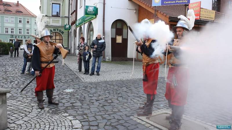 Musztra historycznej straży miejskiej na lubańskim rynku