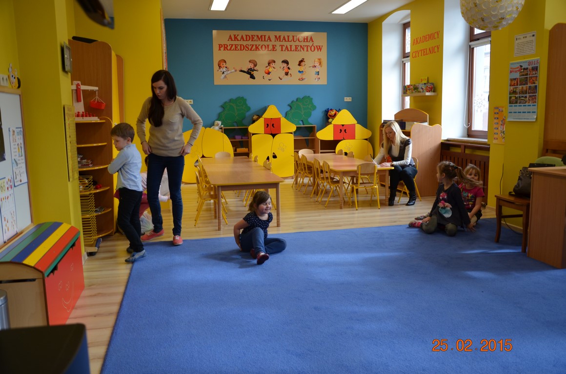 Naszą misją i projektem zarazem jest „Akademia Malucha – radosne przedszkole”, potwierdzone już otrzymanym certyfikatem za udział w ogólnopolskim konkursie. I tak w okresie wielkanocnym dzieci przygotowują w naszej kuchni potrawy świąteczne i malują pisanki, ale również uczestniczą w tak radosnych przedsięwzięciach jak Święto Marchewki, Święto Dyni czy też Dzień Postaci z Bajek.