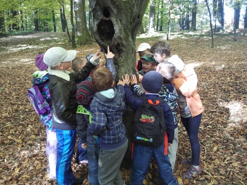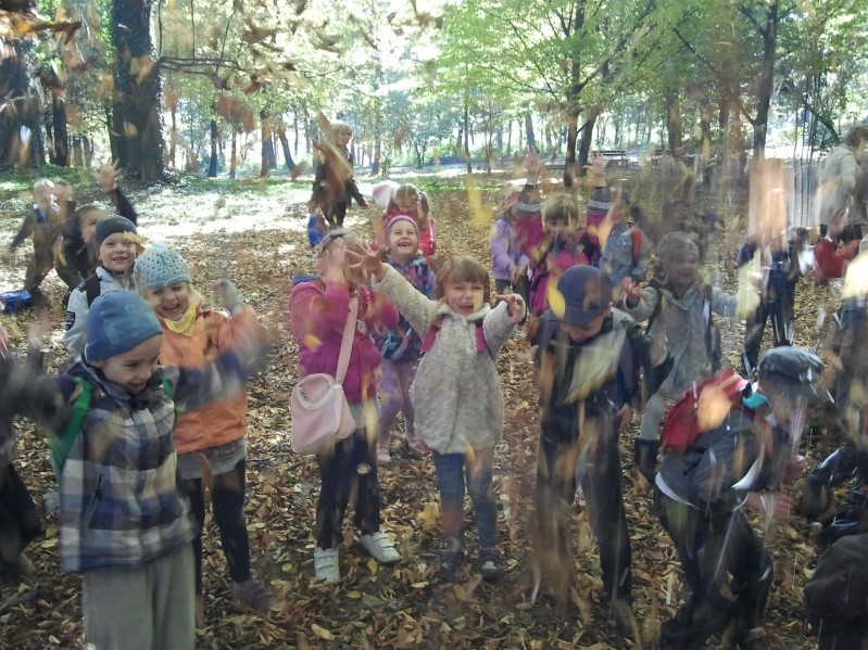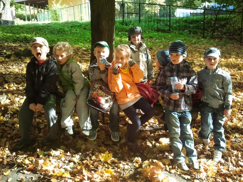 Dnia 19.10.12r. dzieci 5 i 6-letnie wybrały się na spacer do parku "Kamienna Góra" malowniczego miejsca, szczególnie o tej porze roku - jesień. Dzieci były zachwycone widokiem parku w barwach jesiennych. Podziwiały wygląd drzew (pomniki przyrody), obserwowały ptaki. Dużą frajdą dla dzieci był odpoczynek na ławeczkach w parku. Największą atrakcją były zabawy w parku.