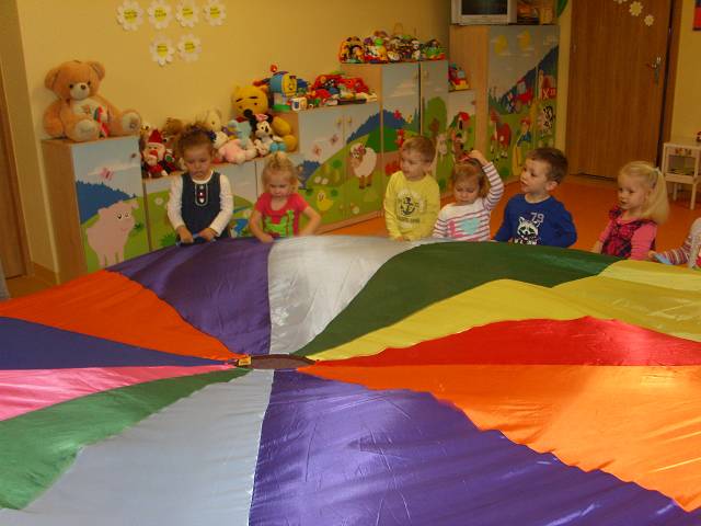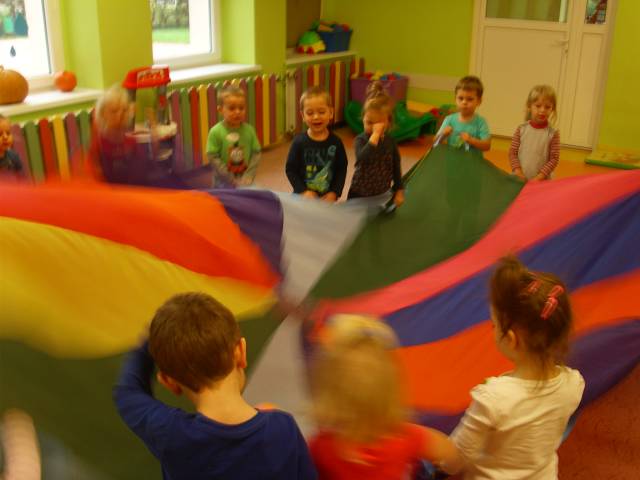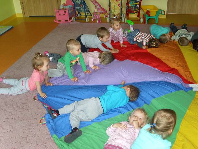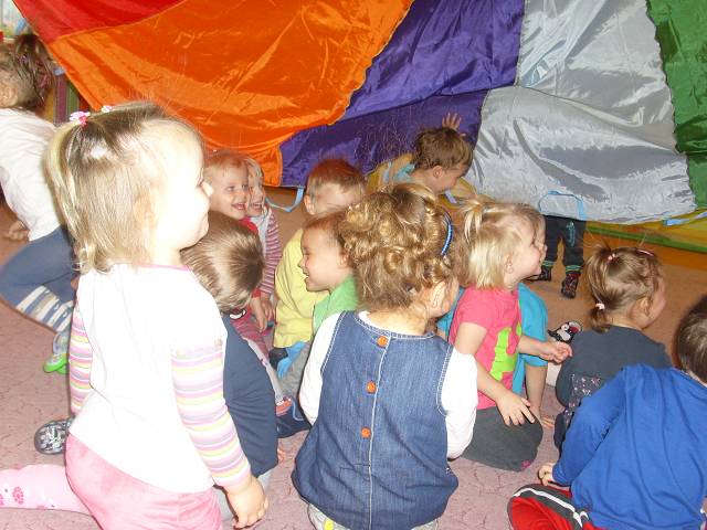 Zabawy z chustą animacyjną Klanza to ulubiona część zajęć naszych maluszków.