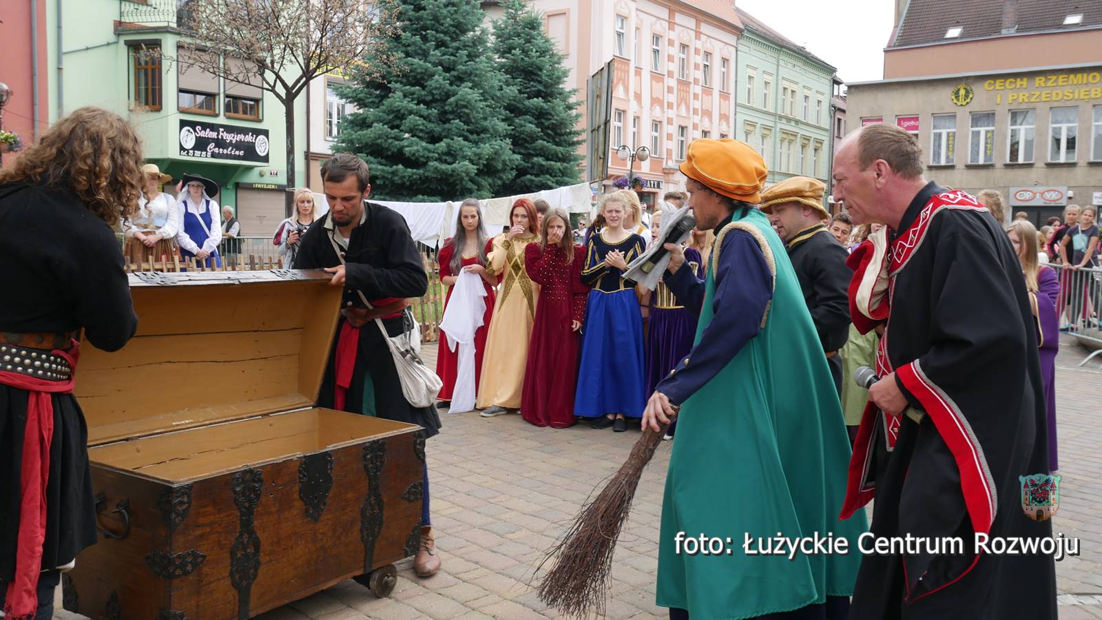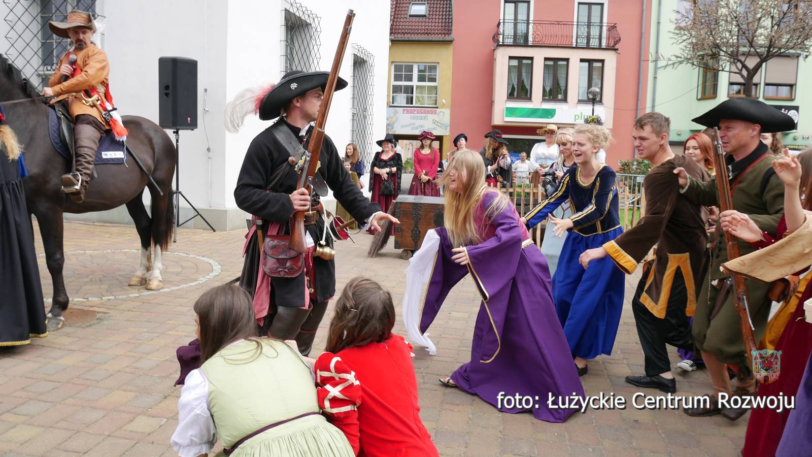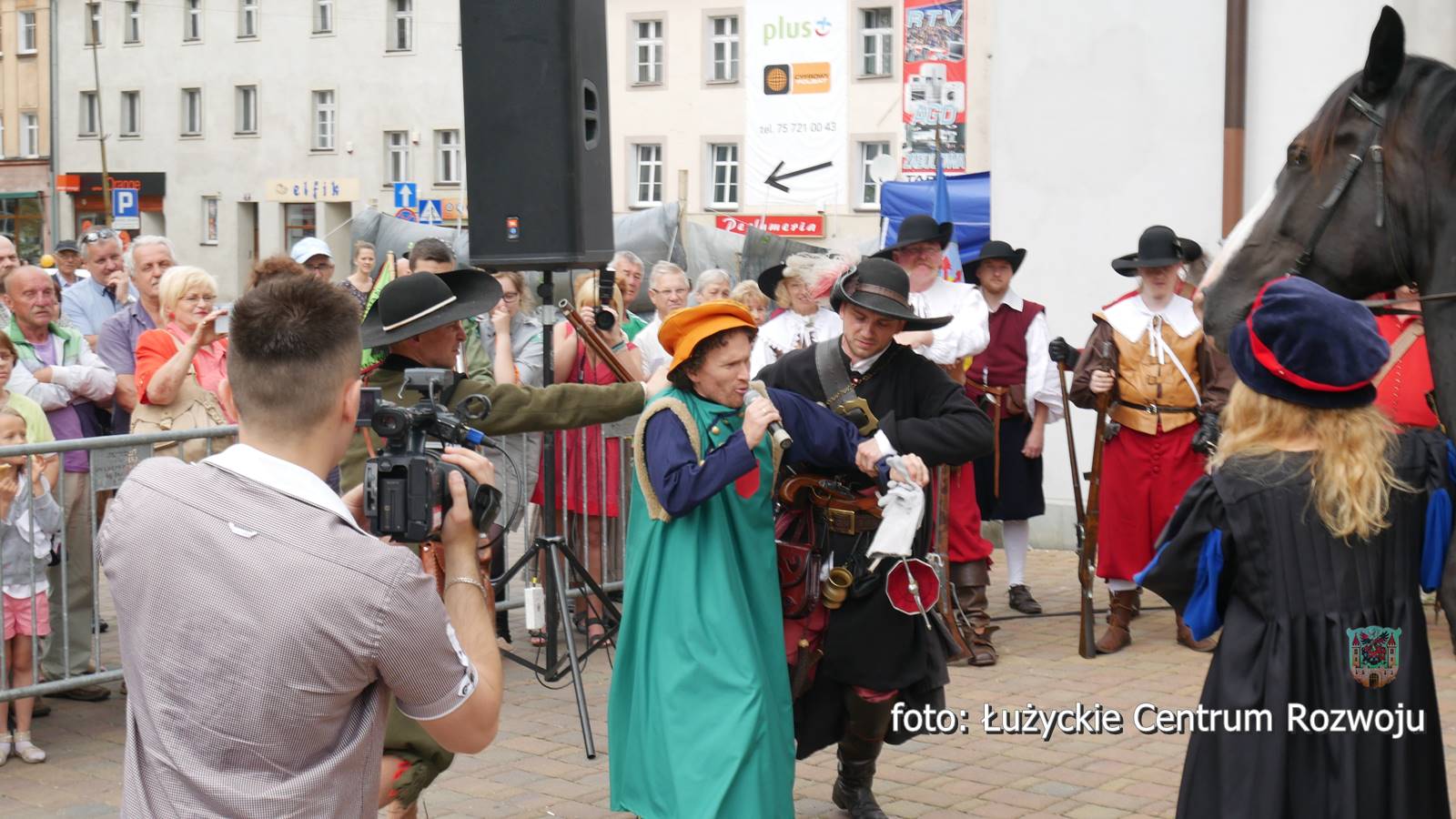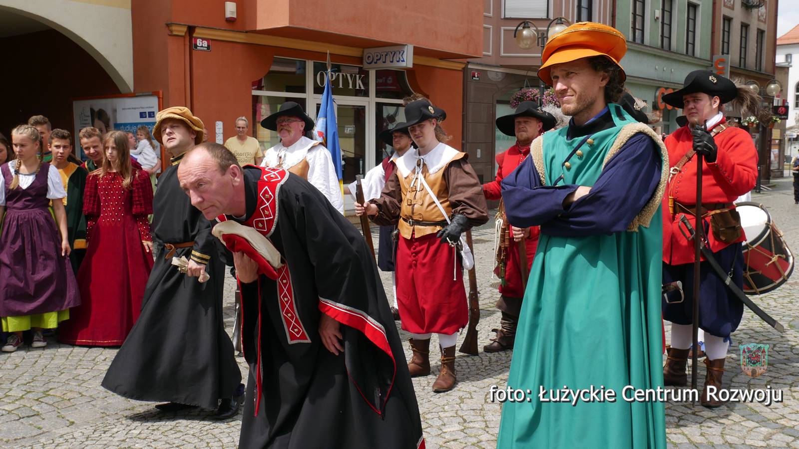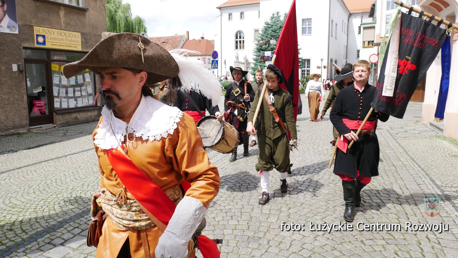 Następnie wszyscy cofnęli się do wydarzeń sprzed prawie czterystu lat. W pierwszej połowie siedemnastego wieku na historii miasta cieniem kładła się wojna trzydziestoletnia, a ówcześni lubanianie dotkliwie odczuwali jej przebieg. W roku 1628 miasto odwiedził Albrecht Wallenstein. Ten wybitny skądinąd wódz, niechlubnie zapisał się na kartach historii Lubania, bo nałożył na miasto mordercze kontrybucje a stacjonowanie jego wojsk w mieście doprowadziło do gospodarczej katastrofy. Do tych właśnie wydarzeń nawiązywało kostiumowe widowisko, w którym wystąpili Andrzej Świderski, szef zaprzyjaźnionej placówki kulturalnej w Pieńsku (jako Albrecht von Wallenstein), Jan Lange, nauczyciel GM 3, radny i aktor teatr Okular (jako burmistrz), Grzegorz Żak (jako radny) i Łukasz Tekiela, dyrektor Muzeum Regionalnego w Lubaniu. W role żołnierzy Wallensteina wcielili się rekonstruktorzy historyczni z krakowskiej grupy Parva Armis. Strażników miejskich odegrali członkowie lubańskiej Łużyckiej Drużyny Łuczniczej. Mieszkańców miasta zagrała młodzież z Gimnazjum nr 3 im. Euroregionu Nysa. Scenariusz był niezwykle dramatyczny. Po przybyciu do Lubania czeskiego wodza, burmistrz i rajcy starali się go udobruchać, odsłaniając wmurowaną w bruk tabliczkę upamiętniającą jego przyjazd. Niestety bezskutecznie, Wallenstein bez skrupułów zażądał pieniędzy, wiktu i opierunku dla swoich żołnierzy i nowych rekrutów. Początkowy opór władz miasta szybko został złamany pokazem siły i już po chwili widzowie mogli wczuć się w dramatyczne losy lubanian, których domy okupowali panoszący się żołdacy, pustoszący spiżarnie i pozostawiający obejścia w nędzy. Pełne emocji było także wcielanie siłą do wojska, oznaczające koniec normalnego życia, wieloletnią rozłąkę z rodziną, bardzo prawdopodobną śmierć lub kalectwo. Pełne życiowej prawdy widowisko zakończył pokaz musztry wojskowej i walki białą bronią oraz pokaz tańca.