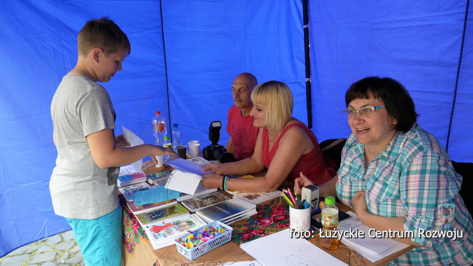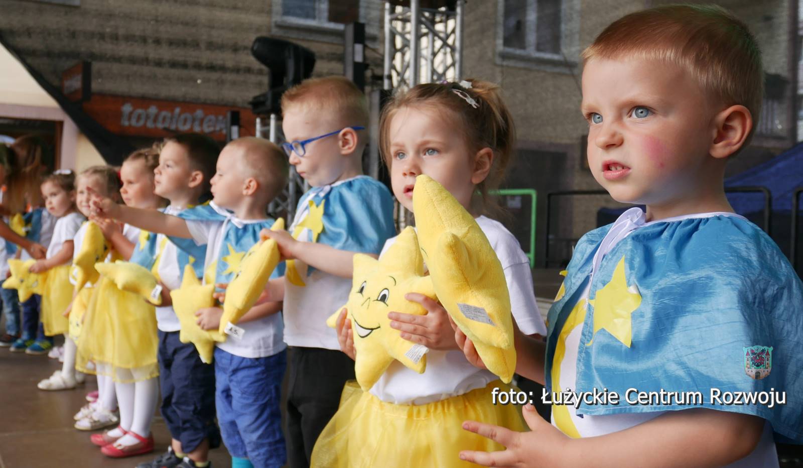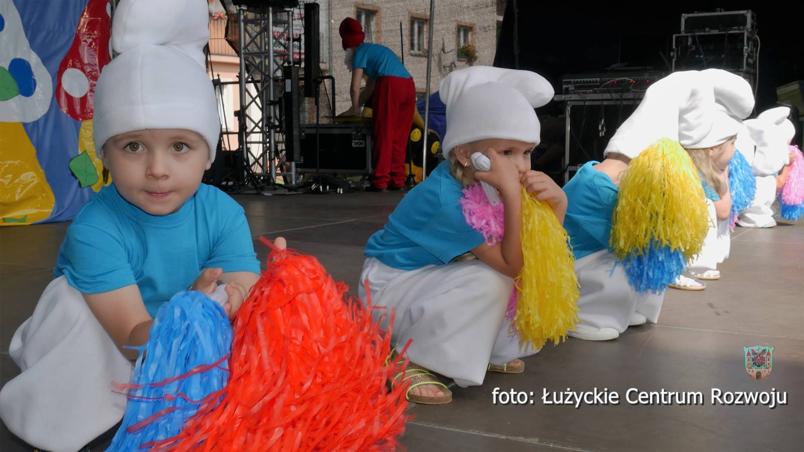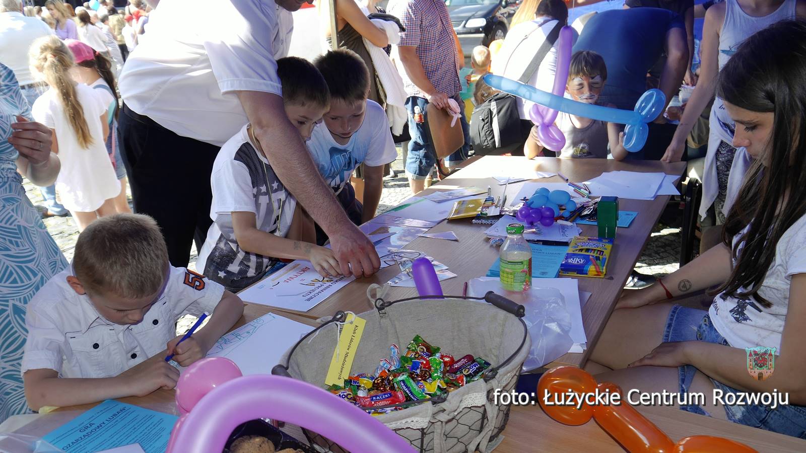 Po tym historycznym spektaklu miasto powróciło do współczesności w jej najbardziej kolorowej i radosnej odsłonie. Scenę zawojowały maluchy z sześciu działających w mieście placówek – Żłobka Miejskiego, Bąbelkowa, Przedszkola Niepublicznego Słoneczne, Akademii Malucha oraz Przedszkoli Miejskich nr 1 i 5. Szybko okazało się że małe gwiazdeczki mają oddane fankluby a ich show kipi radością i barwami. Różne rodzaje tańca przeplatały się, od klasyki i romantyzmu po energetyczne dyskotekowe hity. Wiele postaci znanych było z bajek. Nie zabrakło też oczywiście małych kibiców, raźno zachęcających do świętowania sobotniego sukcesu polskiej reprezentacji na Euro i wspierania naszych w kolejnych meczach. Łącznie na scenie wystąpiło kilkanaście grup dzieci liczących około stu pięćdziesięciu małych wykonawców. Był to prawdziwy festiwal twórczości najmłodszych. Maluchy zarażały wszystkich uczestników imprezy energią i spontanicznością. Mali i duzi bawili się jak dzieci. A było co robić. Na rynku prowadzone były warsztaty robienia wielkich mydlanych baniek, tworzenia biżuterii i zwierzątek z baloników. Bezpłatnie dostępne były przeróżne imprezowe atrakcje, takie jak zorbing, dmuchany zamek i kursująca po mieście kolejka. Ekipa Miejskiej i Powiatowej Biblioteki Publicznej w Lubaniu dzielnie zajmowała się nieodpłatnym malowaniem twarzy. Przede wszystkim jednak pod sceną trwała wielka gra terenowa, przygotowana przez siedemnaście organizacji pozarządowych współorganizujących DAR. Organizacje podczas imprezy prowadziły aktywne stoiska, na których zapraszały do wykonywania różnorakich zadań, związanych tematycznie ze swoim zakresem działania. Kto odwiedził wszystkie ze specjalną książeczką, wykonał zadania i zebrał pieczątki, mógł liczyć na mały gwarantowany prezent i brał udział w losowaniu sporych nagród – 200, 300 i 500 złotych w bonie ufundowanych przez firmę Chromex. Na scenie zaprezentowały się również dorosłe lubańskie talenty. Krótki koncert dał zespół Pogoda Ducha, reprezentujący Lubańskie Stowarzyszenie Abstynentów Odnowa. Refleksyjnym własnym tekstom towarzyszyły bluesowe nastrojowe aranżacje. Do rozmyślań zaprosiła również Dolnośląska Grupa Literacka Nurt w osobach Krystyny Sławińskiej, Anny Nawrockiej i Jana Kiszczyńskiego. Dla odmiany zabawowe i biesiadne, ludowe klimaty wyśpiewywały Złote Nutki, działające przy Akademii Seniora. Odważni członkowie czterech organizacji wzięli udział w krótkim konkursie na temat darów, ich otrzymywania i dawania.