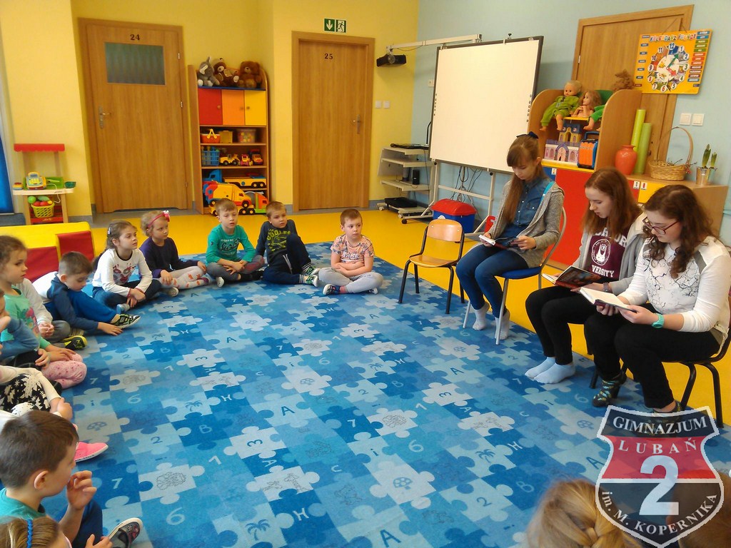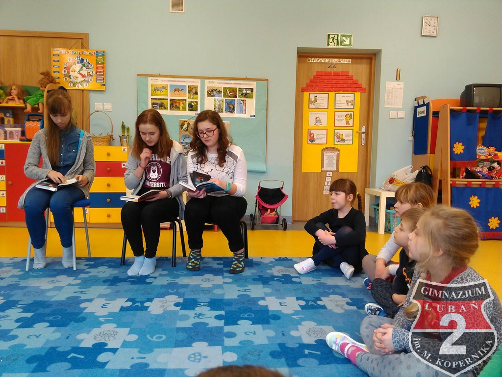Nasi gimnazjaliści po raz kolejny wzięli udział w akcji „Cała Polska czyta dzieciom”. Dnia 9 marca 2017 roku roku uczniowie z Gimnazjum nr 2 im. M. Kopernika w Lubaniu gościli w Miejskim Przedszkolu nr 3 w Lubaniu, w starszej grupie.