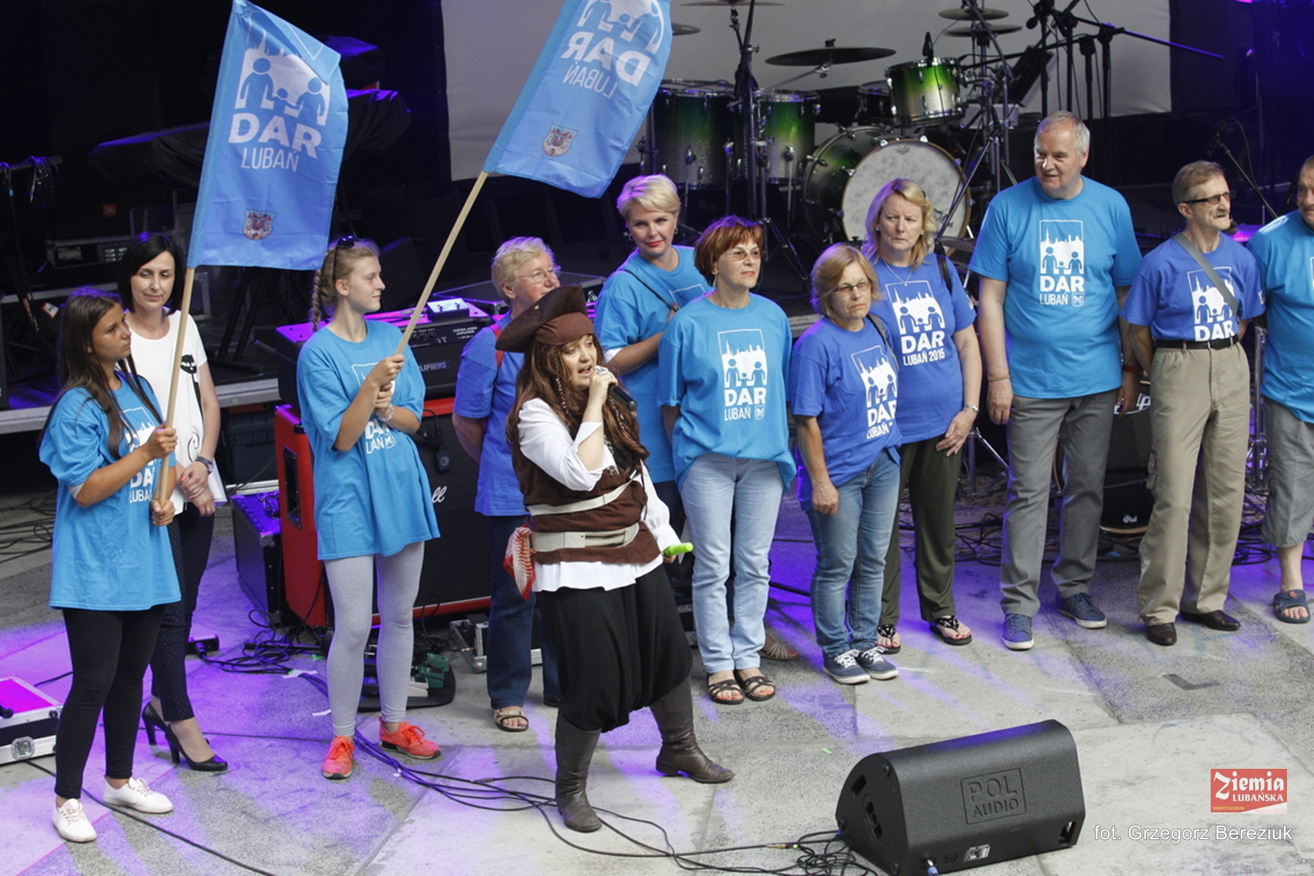 Po występie księdza na scenę wtargnęła, a raczej może dokonała abordażu malownicza grupa. Niebiesko ubrani śmiałkowie uzbrojeni we flagi, na czele z bajkową piratką zażądali uwagi widzów. Okazało się, że są to lubańscy pasjonaci, współorganizujący niedzielny Dzień Aktywnej Rodziny, wraz z prowadzącą tę imprezę Anną Łagowską. Celem ich akcji było zaproszenie zebranych na niedzielny festyn.