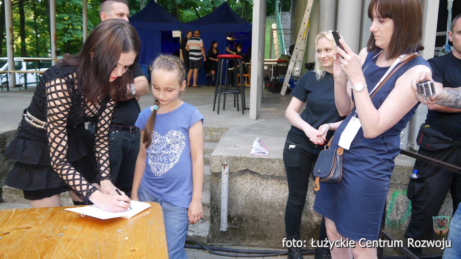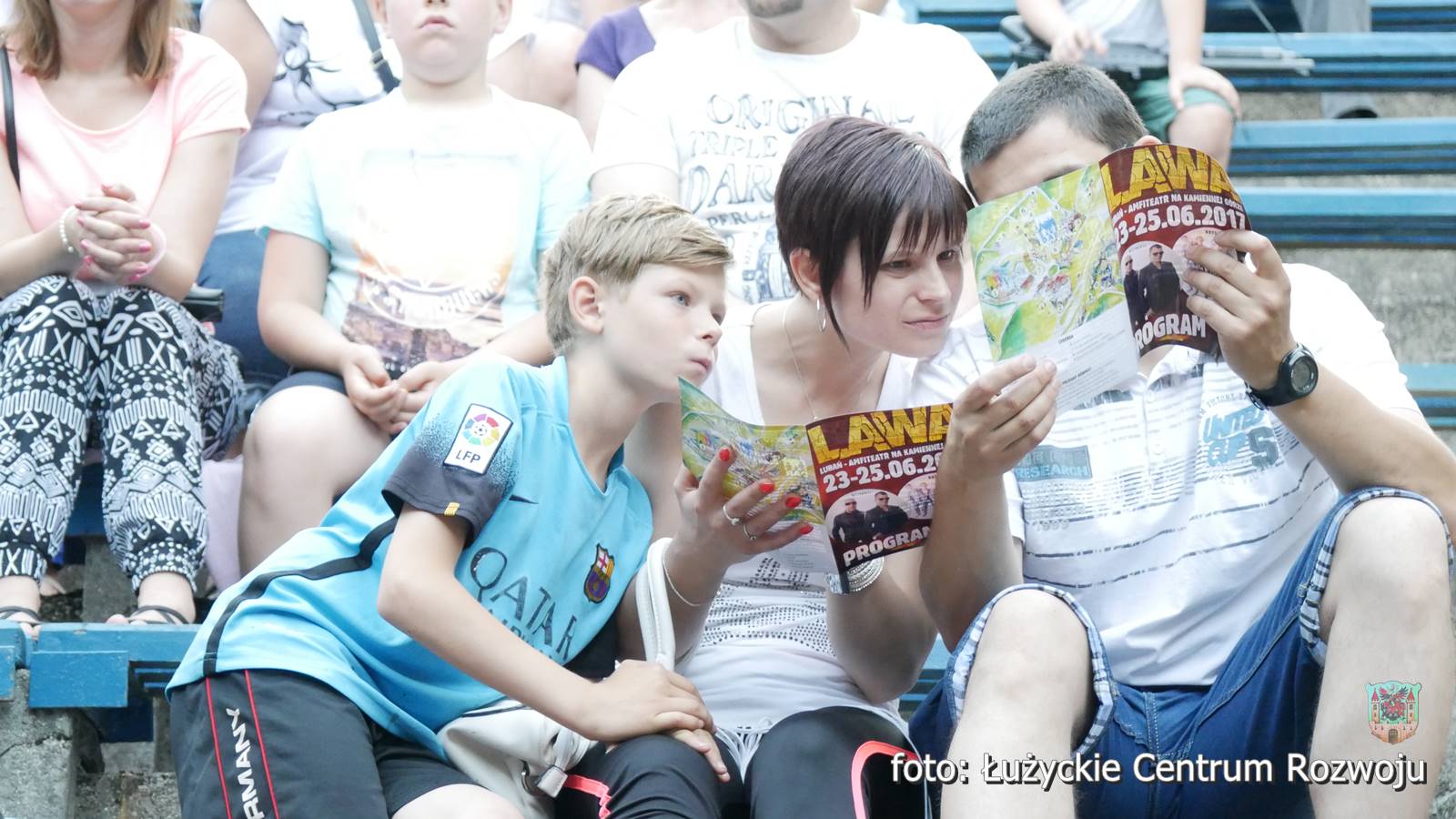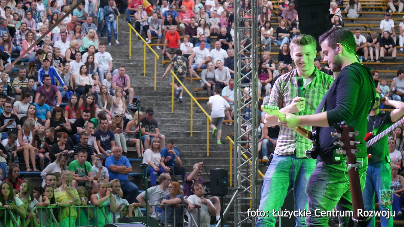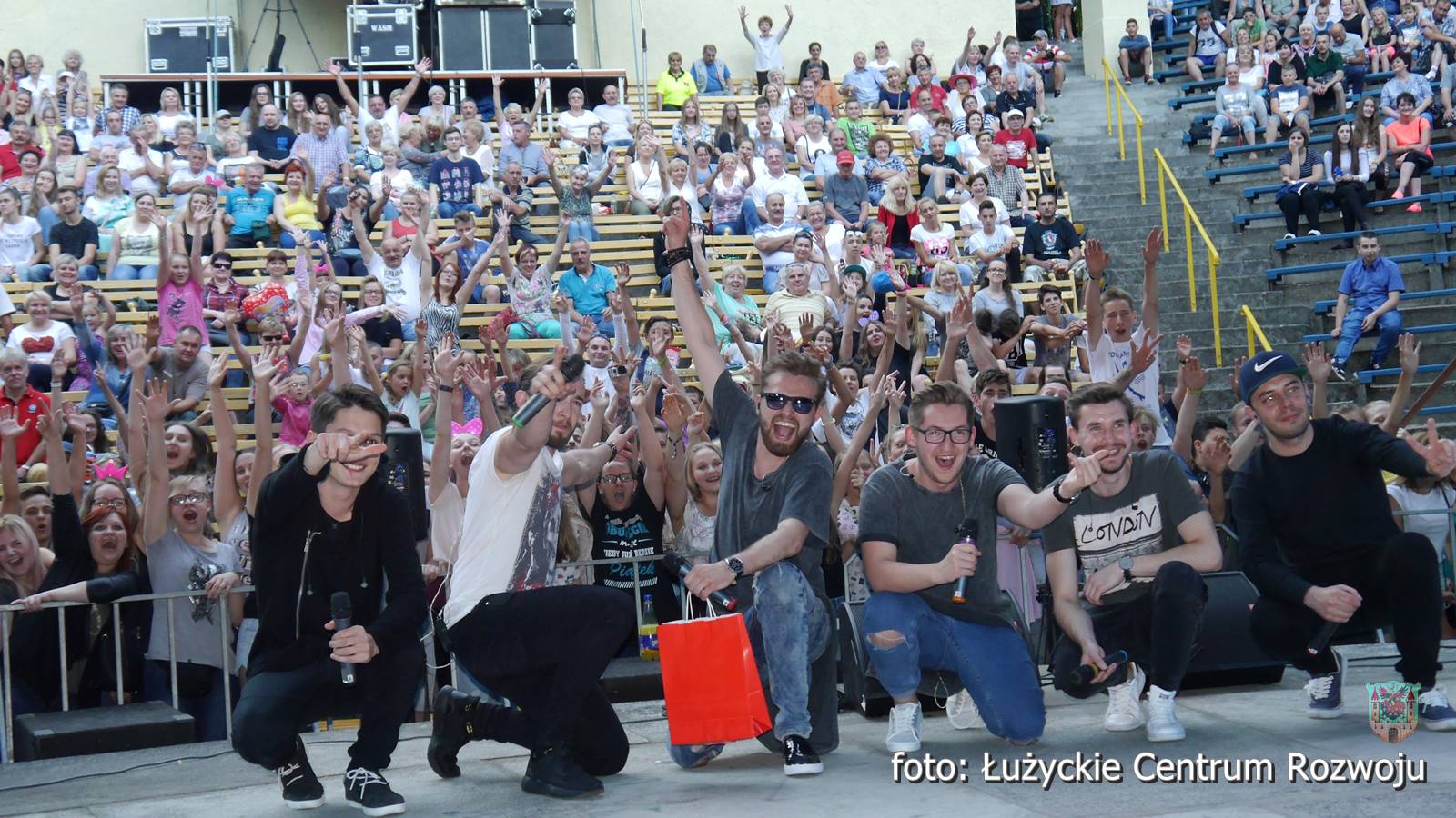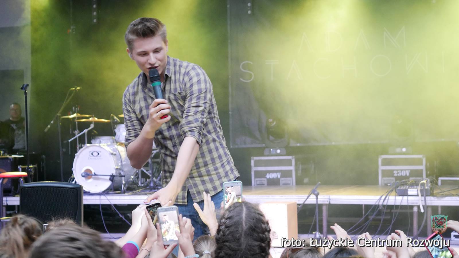 Adam Stachowiak z zespołem. Żeński pisk niósł się falami, oklaski przyćmiły ptasi śpiew, a młodzieniec skutecznie zagrzewał lubanian do zabawy. Szybsze kawałki pozwalały się poruszać, a te bardziej liryczne wyciskały tu i ówdzie łzy. Adam transmitował część występu na żywo, dając możliwość przyłączenia się do Lawy tym, którzy nie mogli przybyć. Wokalista miał niesamowity kontakt z publicznością i chyba sam również dobrze się bawił, ponieważ nie omieszkał podziękować Lubaniowi za wyjątkowy wieczór.