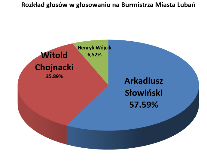 Arkadiusz Słowiński został ponownie wybrany Burmistrzem Miasta Lubań. Poniżej podajemy wyniki wyborów Burmistrza Miasta Lubań.
