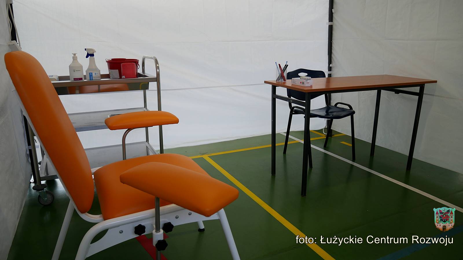 Punkt Szczepień Przeciwko Covid-19 czeka na pacjentów. Został już odpowiednio oznakowany, zabezpieczony i wyposażony. W pierwszej kolejności pacjenci trafią do poczekalni. Po pozytywnym przejściu badania kwalifikacyjnego będą kierowani do kolejnego namiotu, gdzie zostaną zaszczepieni. Ostatni etap procesu szczepienia to strefa odpoczynku. Na terenie PSP wyznaczono również dodatkowy punkt medyczny.