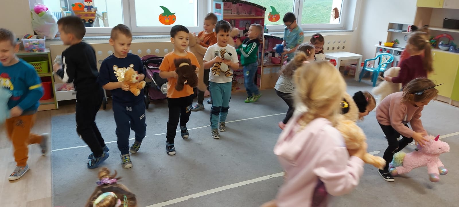 Tego dnia dzieci przyszły do przedszkola ze swoimi ulubionymi misiami. Miś jest bardzo ważny dla każdego dziecka, można go przytulić i uściskać...Pluszowy miś jest ulubieńcem wszystkich i tych małych, i tych dużych. Dzieci poznały historię Święta Pluszowego Misia. W tym wesołym dniu przedszkolaki czekało wiele atrakcji. Były wspólne zabawy i tańce z misiami, oglądanie książeczek i bajek z ulubionymi misiami. Dzień Pluszowego Misia w naszym przedszkolu był pełen humoru i świetnej zabawy. Dzieci były pełne radości, że mogły spędzić tyle czasu z ulubioną maskotką - misiem pluszowym.