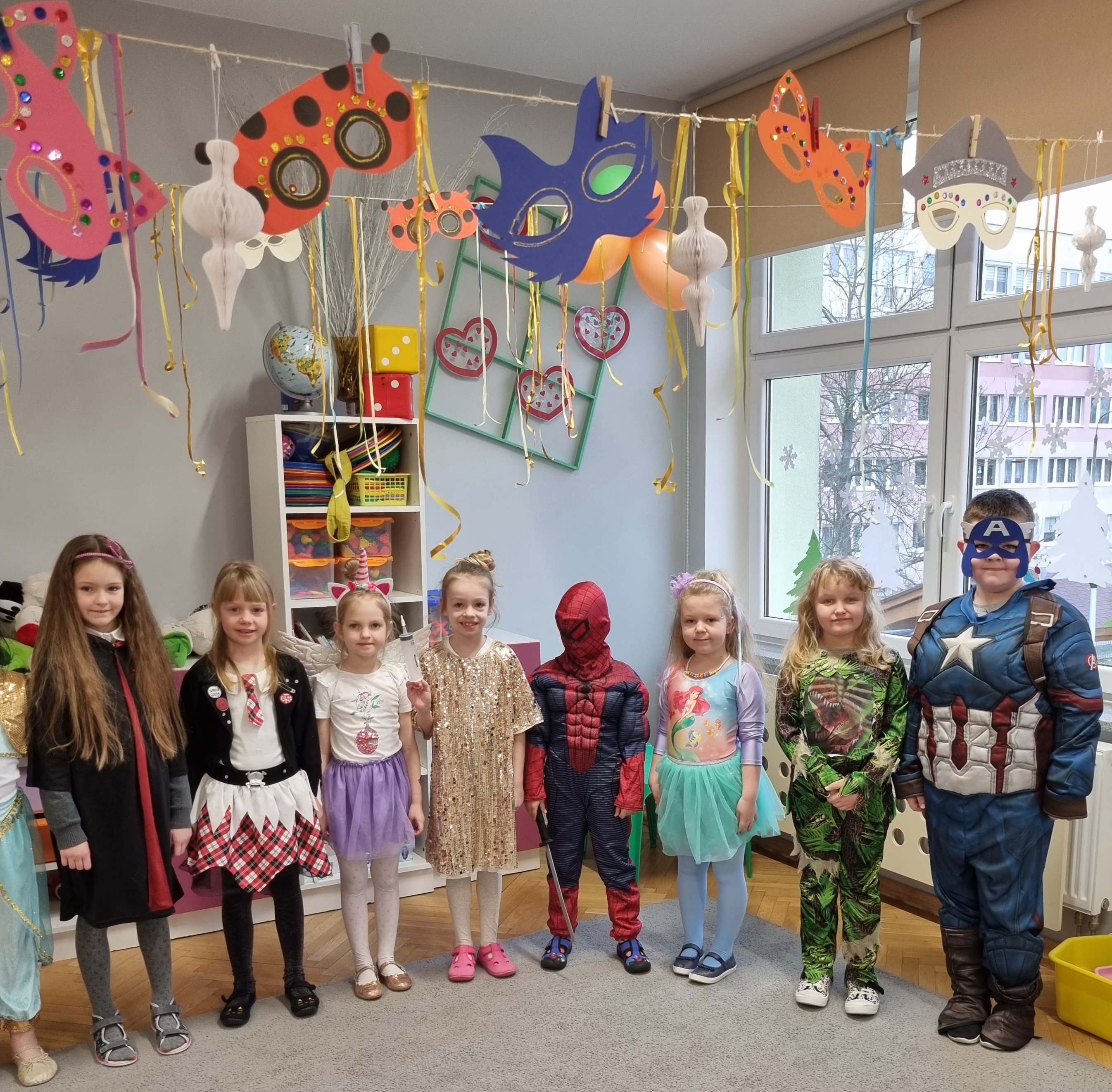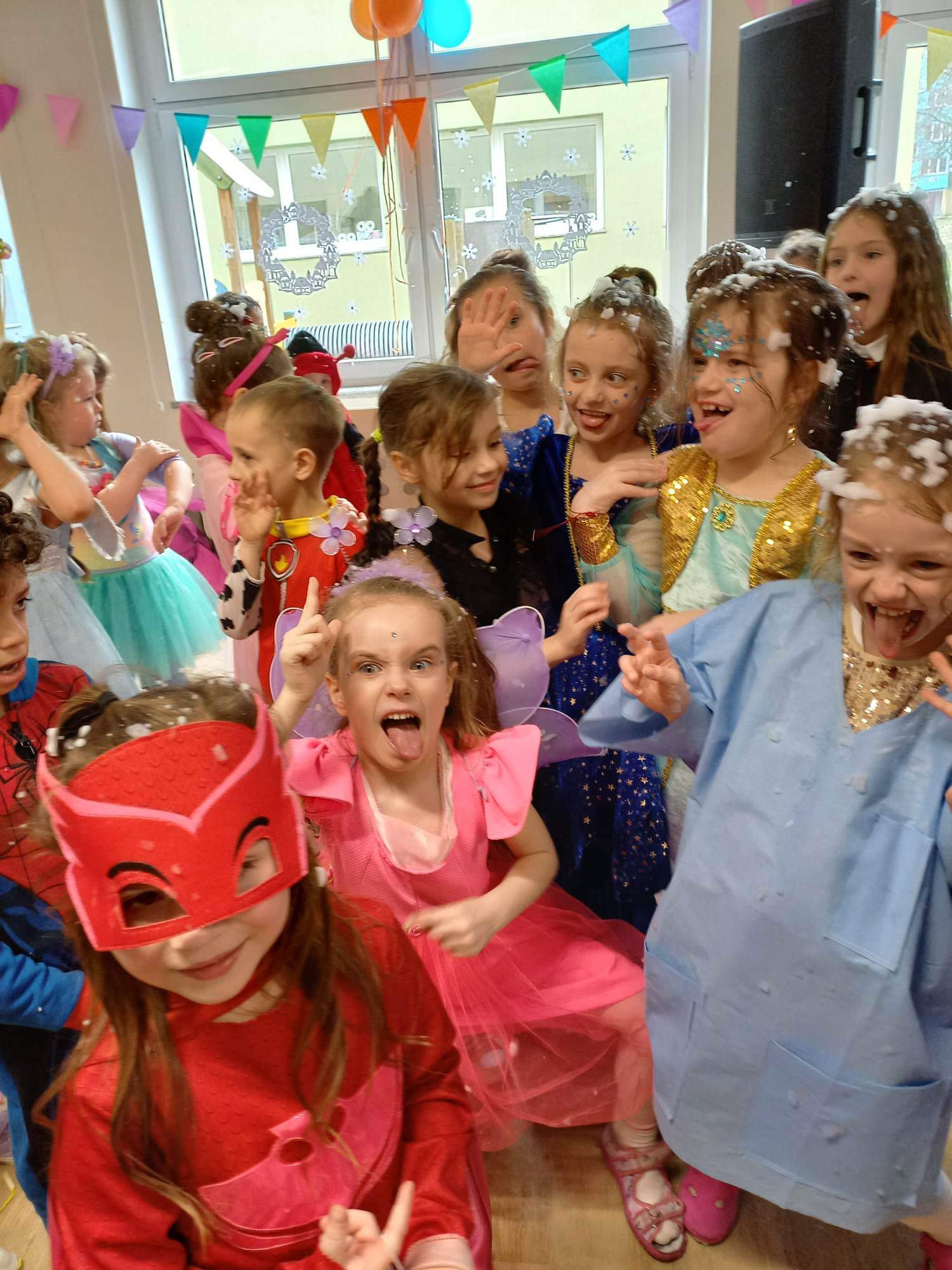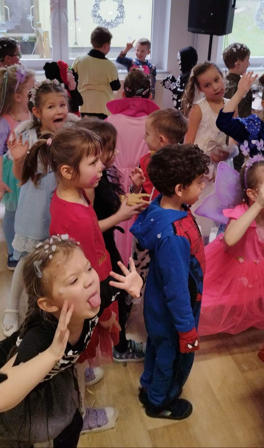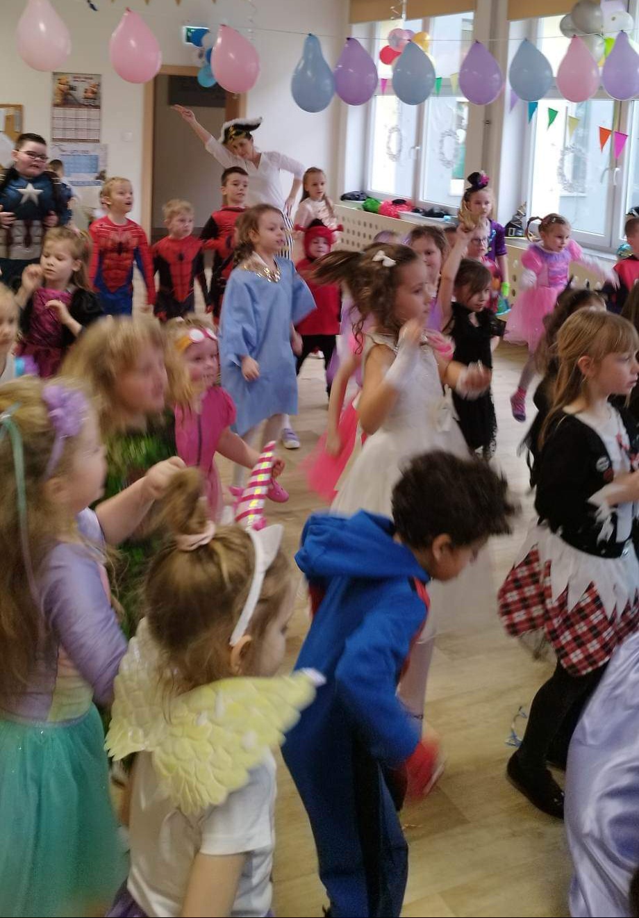 Były królewny, księżniczki, wróżki, biedronki, batmany, spidermany, piraci, skrzaty, policjanci i różne kreacje bohaterów ulubionych bajek przez dzieci. Przebierańcy świetnie bawili się przy muzyce DJ Pipka. Skoczna i wesoła muzyka zapraszała do tańca. Bal karnawałowy przebiegł w serdecznej atmosferze. Dziękujemy rodzicom za przygotowanie ciekawych strojów. Kolejny bal karnawałowy już za rok...