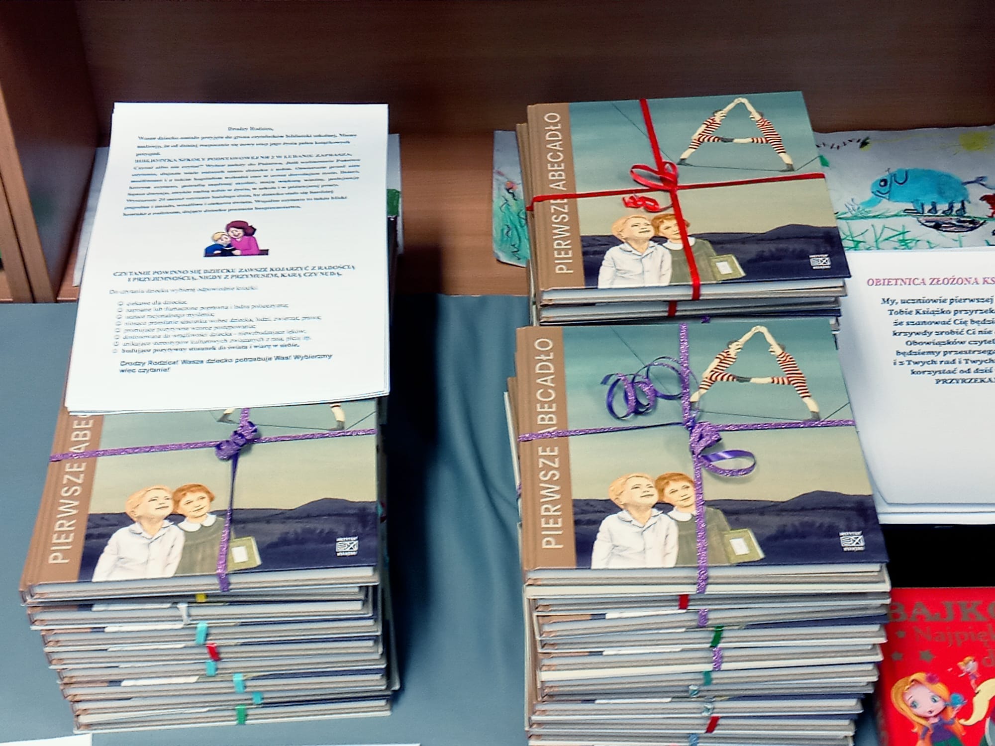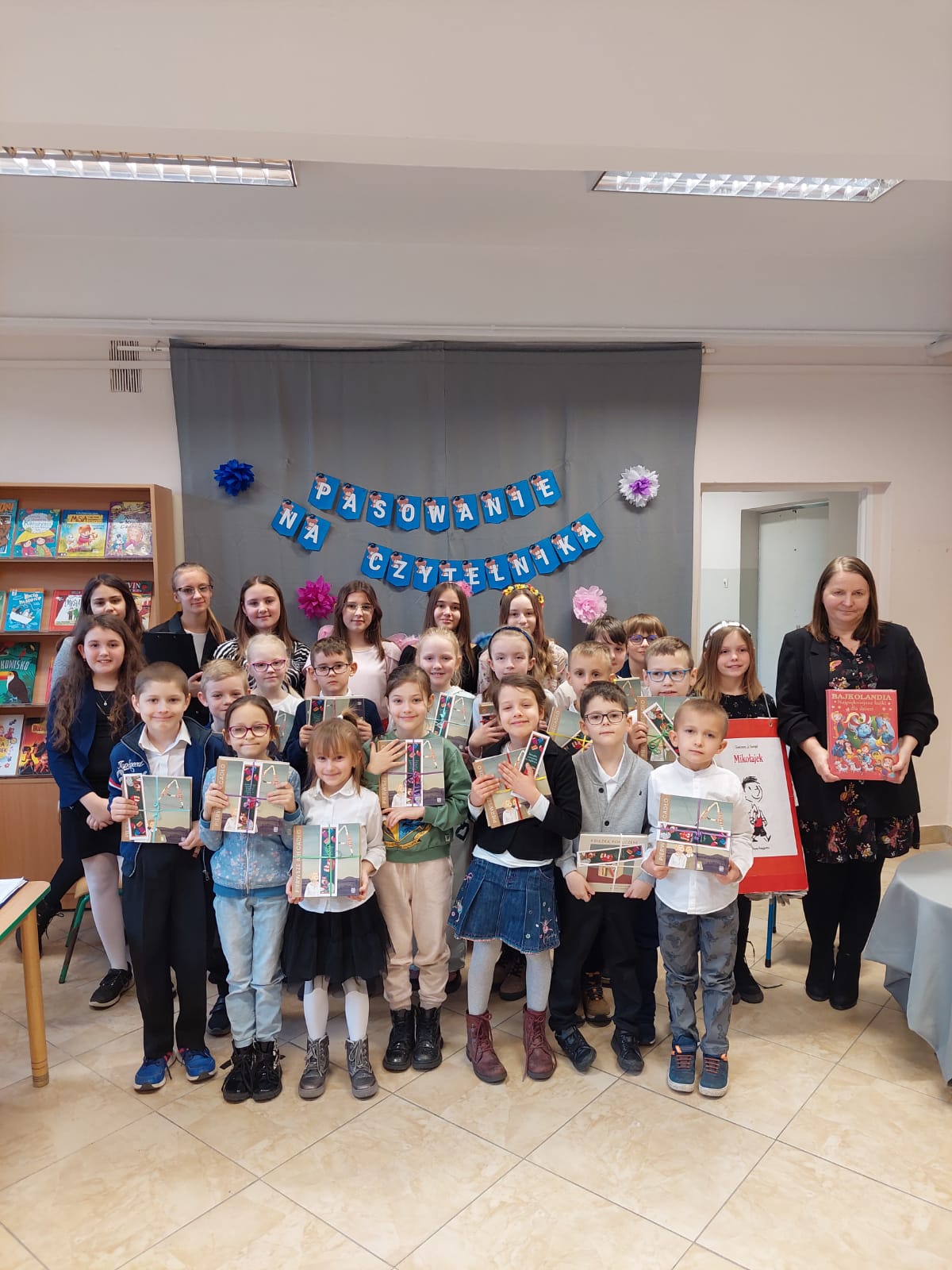 Głównym celem uroczystości było zachęcenie najmłodszych uczniów do korzystania z biblioteki szkolnej, wypożyczania książek oraz nieustannego rozwijania umiejętności czytania.