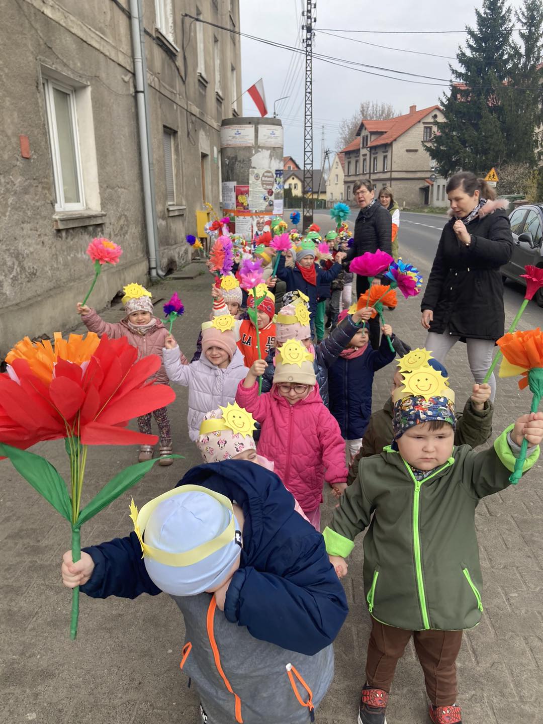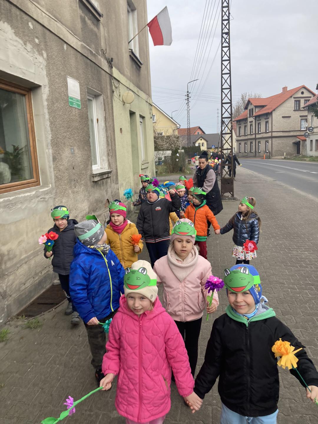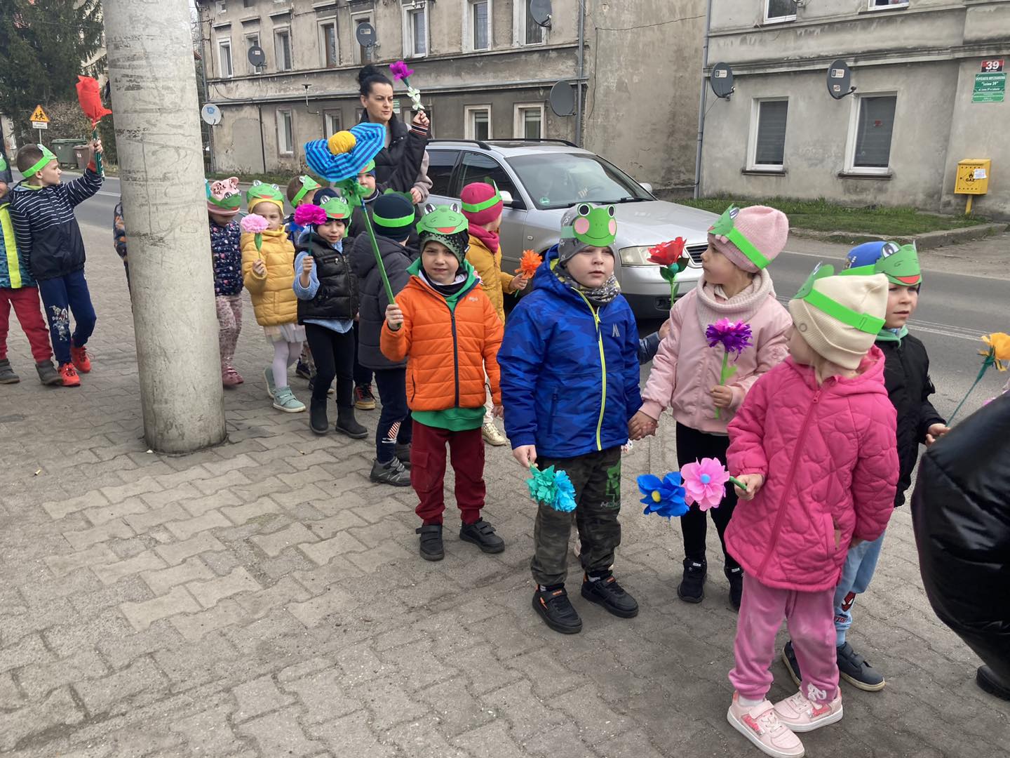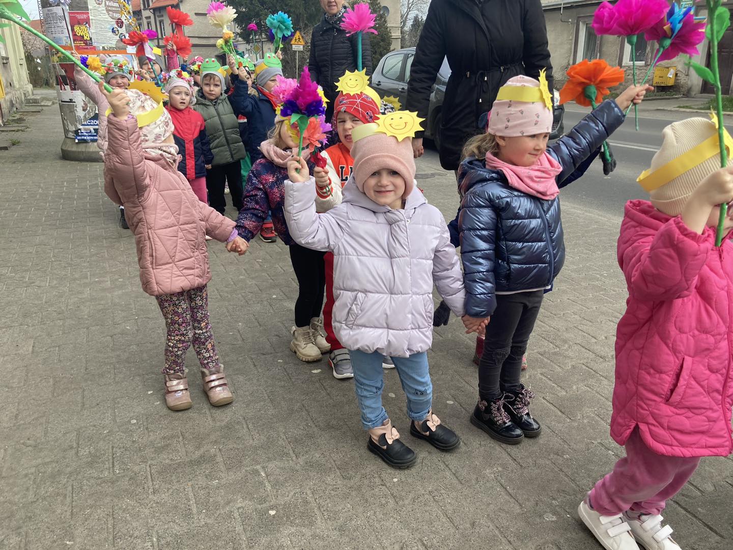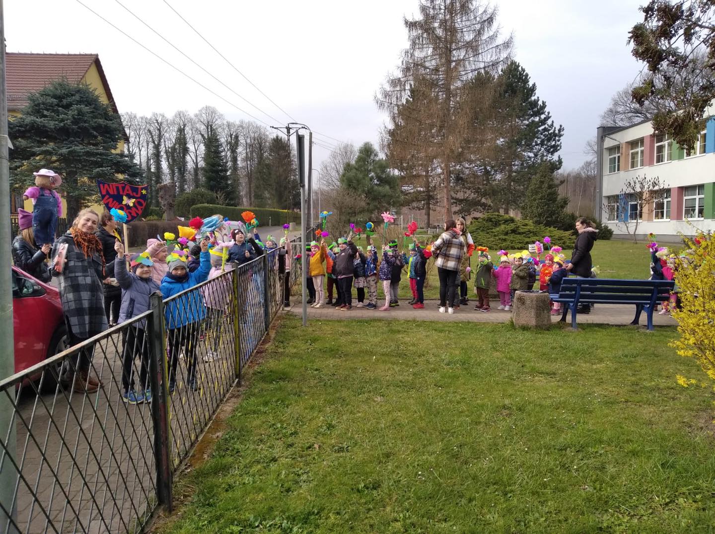 Uroczystości powitania Wiosny rozpoczęły się od zabaw związanych z tematyką pór roku. Mimo wielu atrakcji najbardziej oczekiwaną częścią dnia było wyjście na spacer, podczas którego mogliśmy pożegnać zimę i powitać wiosnę. Dzieci radośnie maszerowały w wiosennym korowodzie, na czele którego widniała Marzanna, którą następnie pożegnaliśmy według tradycji.