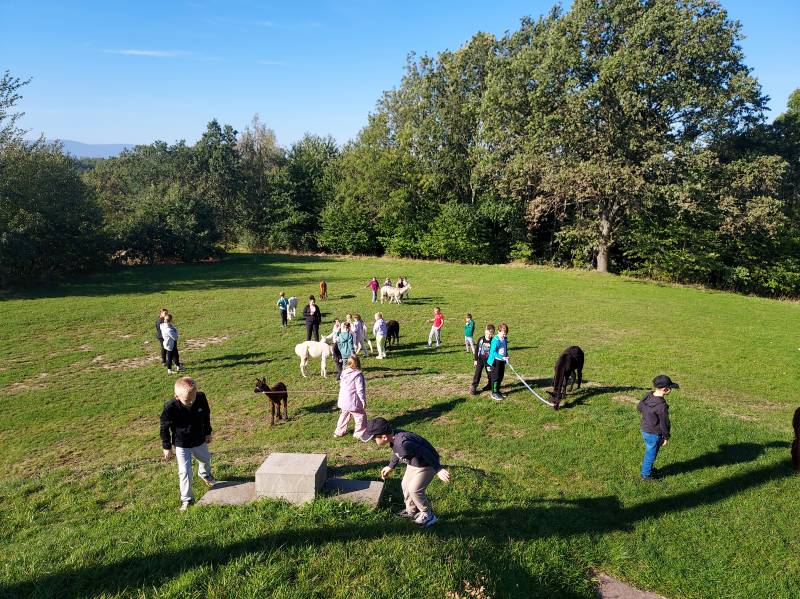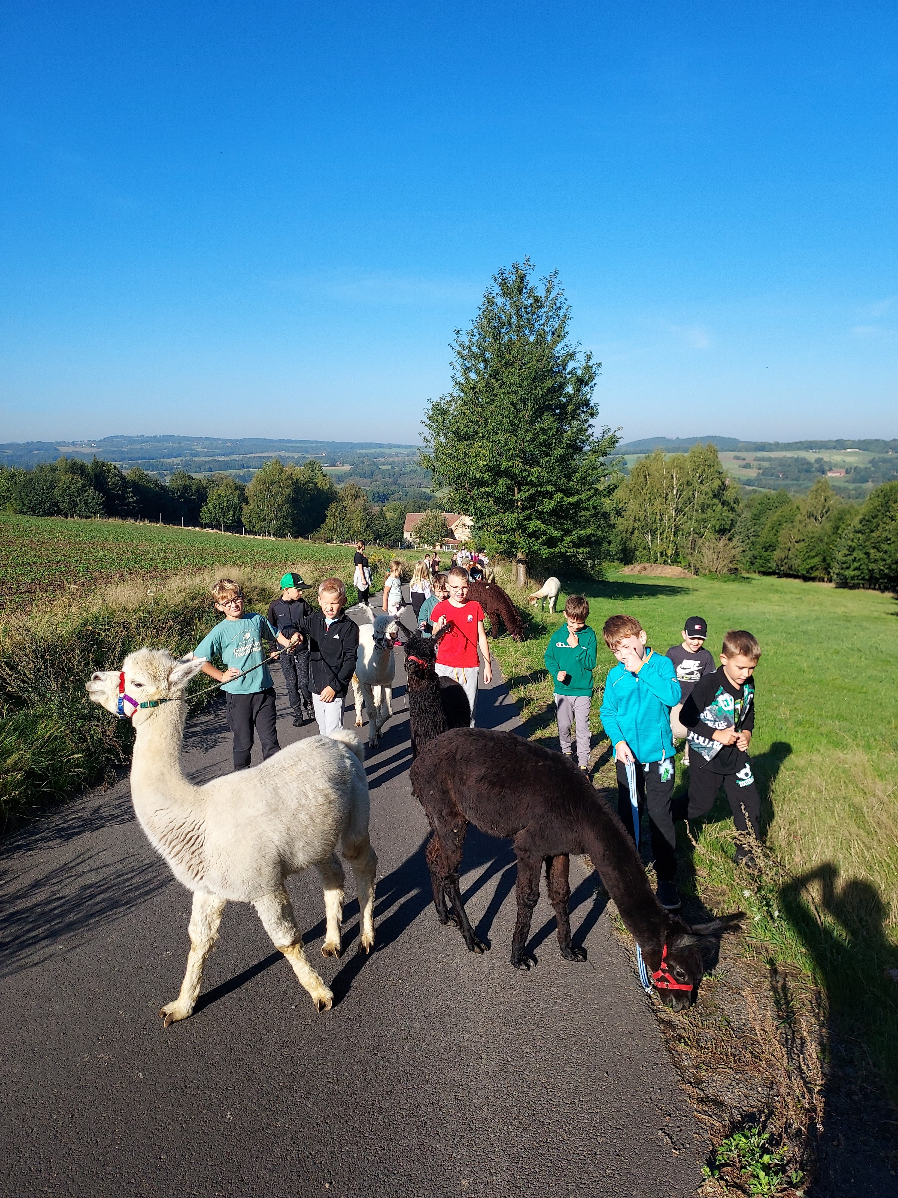 Uczniowie klas drugich wzięli udział w integracyjnej wycieczce autokarowej do hodowli alpak w malowniczej Proszówce. Dzieci miały okazję pospacerować z nimi po urokliwych, zielonych łąkach, które otaczają gospodarstwo. Pogoda sprzyjała aktywności na świeżym powietrzu.