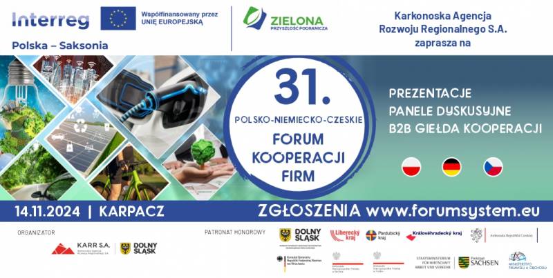 Karkonoska Agencja Rozwoju Regionalnego zaprasza mikro, małych i średnich przedsiębiorców, którym zależy na nawiązaniu międzynarodowych kontaktów biznesowych zaprezentowaniu oferty oraz wymianie doświadczeń zaprasza na Polsko-Niemiecko-Czeskie Forum Kooperacji Firm.