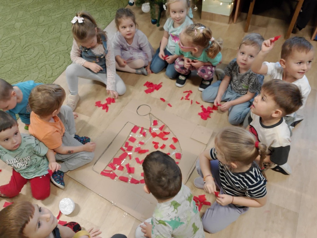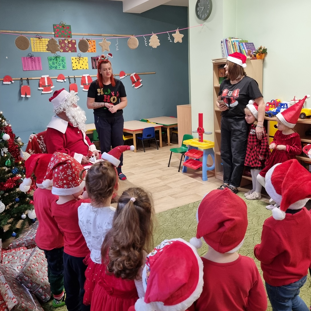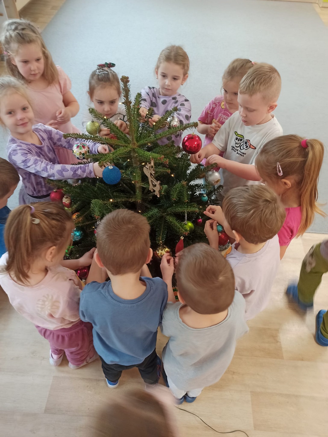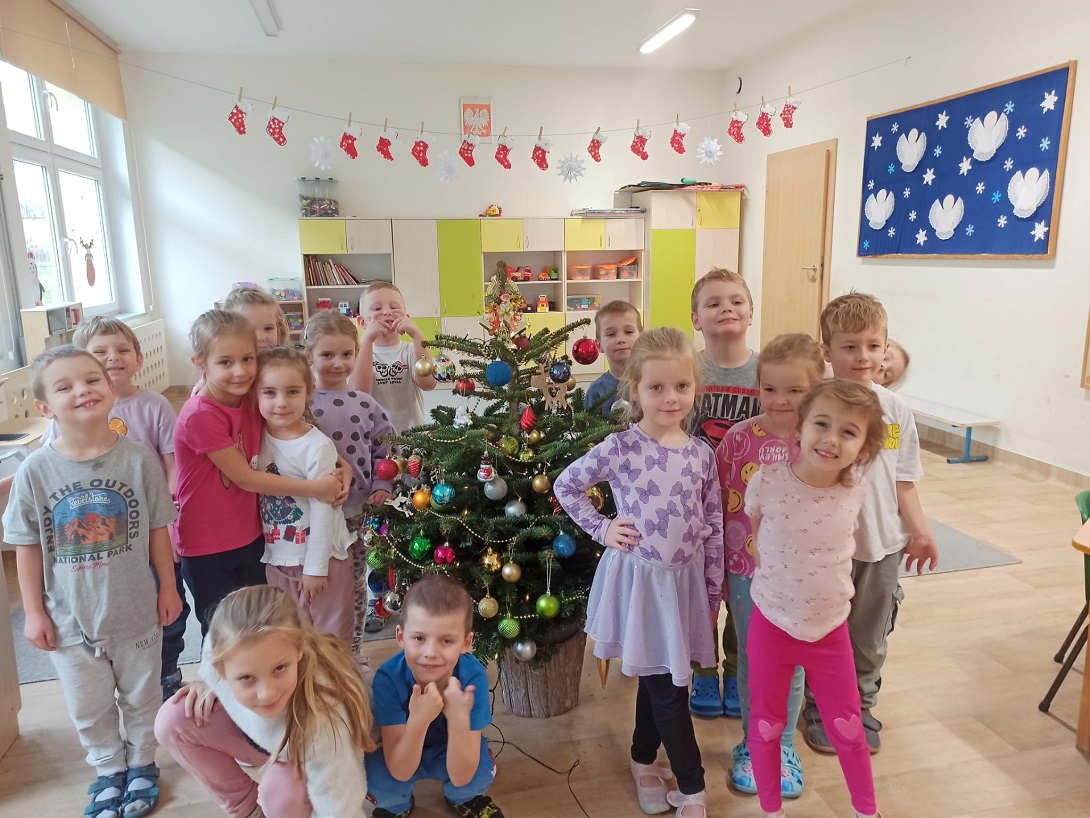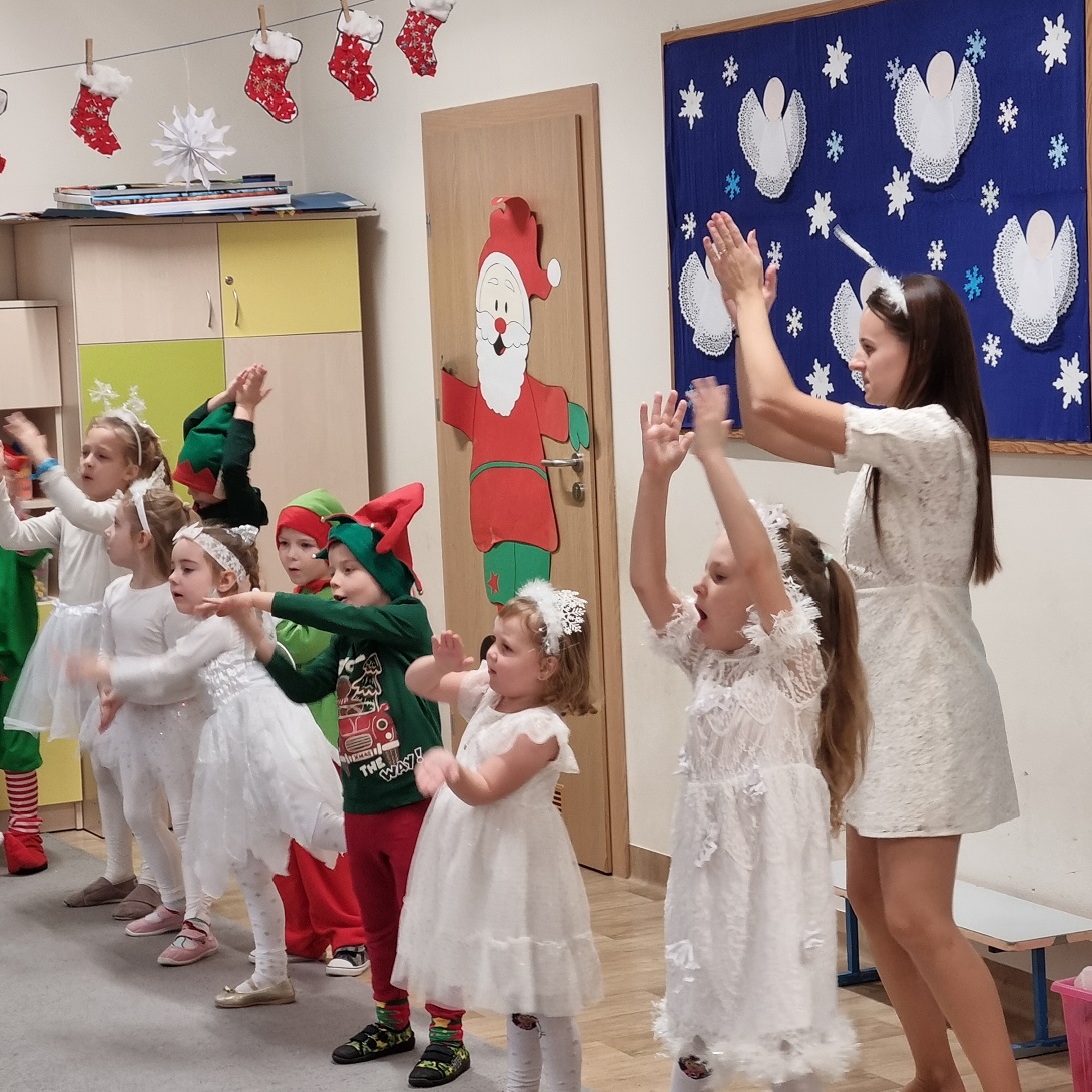 Chociaż nie było śniegu, jak co roku przybył na czas. Spotkanie przebiegało w radosnej atmosferze. Dzieci z grupy IV pod opieka pani Ani powitały niezwykłego gościai oprowadzały Mikołaja po przedszkolu. Wszystkie dzieci ubrały się na kolor czerwony, a głowy zdobiły mikołajowe czapki lub opaski świąteczne.Każda grupa przygotowała dla gościa muzyczną niespodziankę. Przedszkolaki starannie przygotowały się do wizyty Św. Mikołaja. W przedszkolu pisały lub rysowały listy, nauczyły się piosenek o Mikołaju, wykonywały prace plastyczne o tematyce świątecznej, ubierały choinkę, dekorowały salę, piekły pierniczki i wykonywały smakołyki cukierkowe.Na twarzach dzieci malował się uśmiech, przejęcie, a takze nadzieja na kolejne spotkanie. Św. Mikołaju bardzo dziękujemy za odwiedziny , podarki otrzymane od Ciebie bardzo nam podobają się. Dziękujemy za odwiedziny i do zobaczenia za rok...