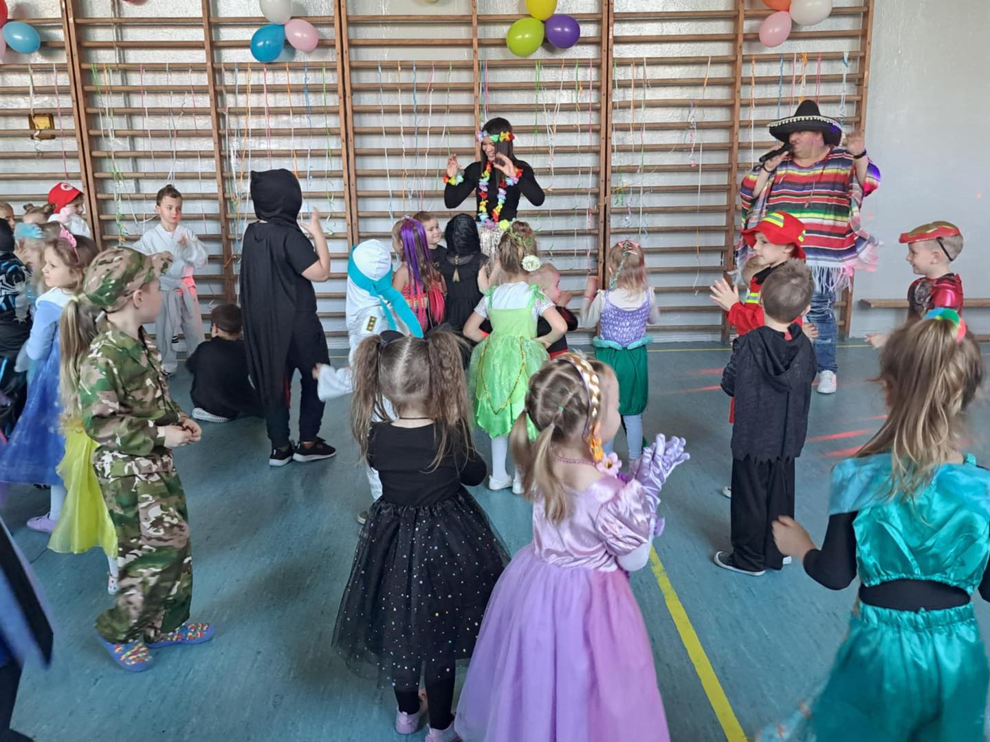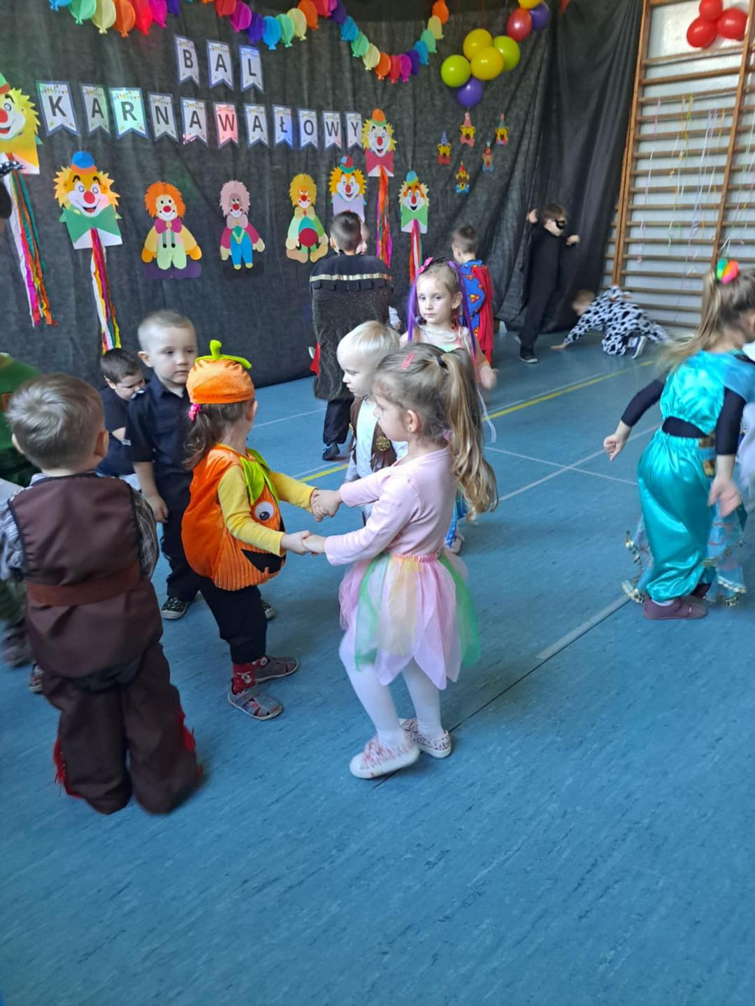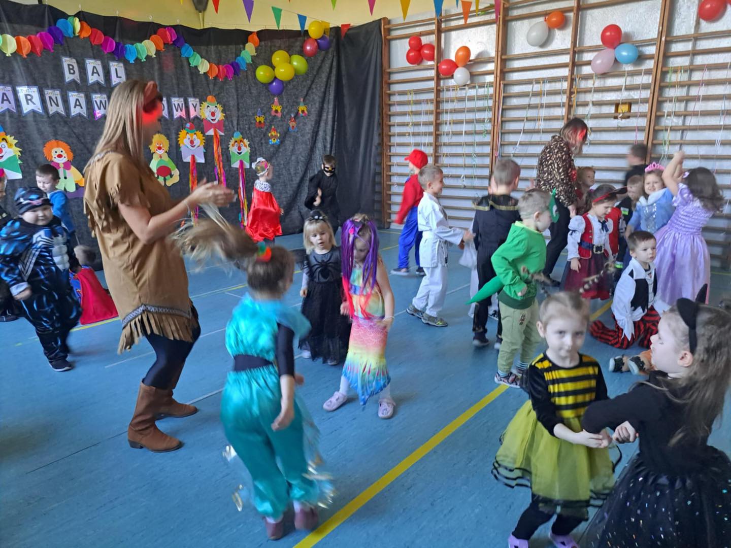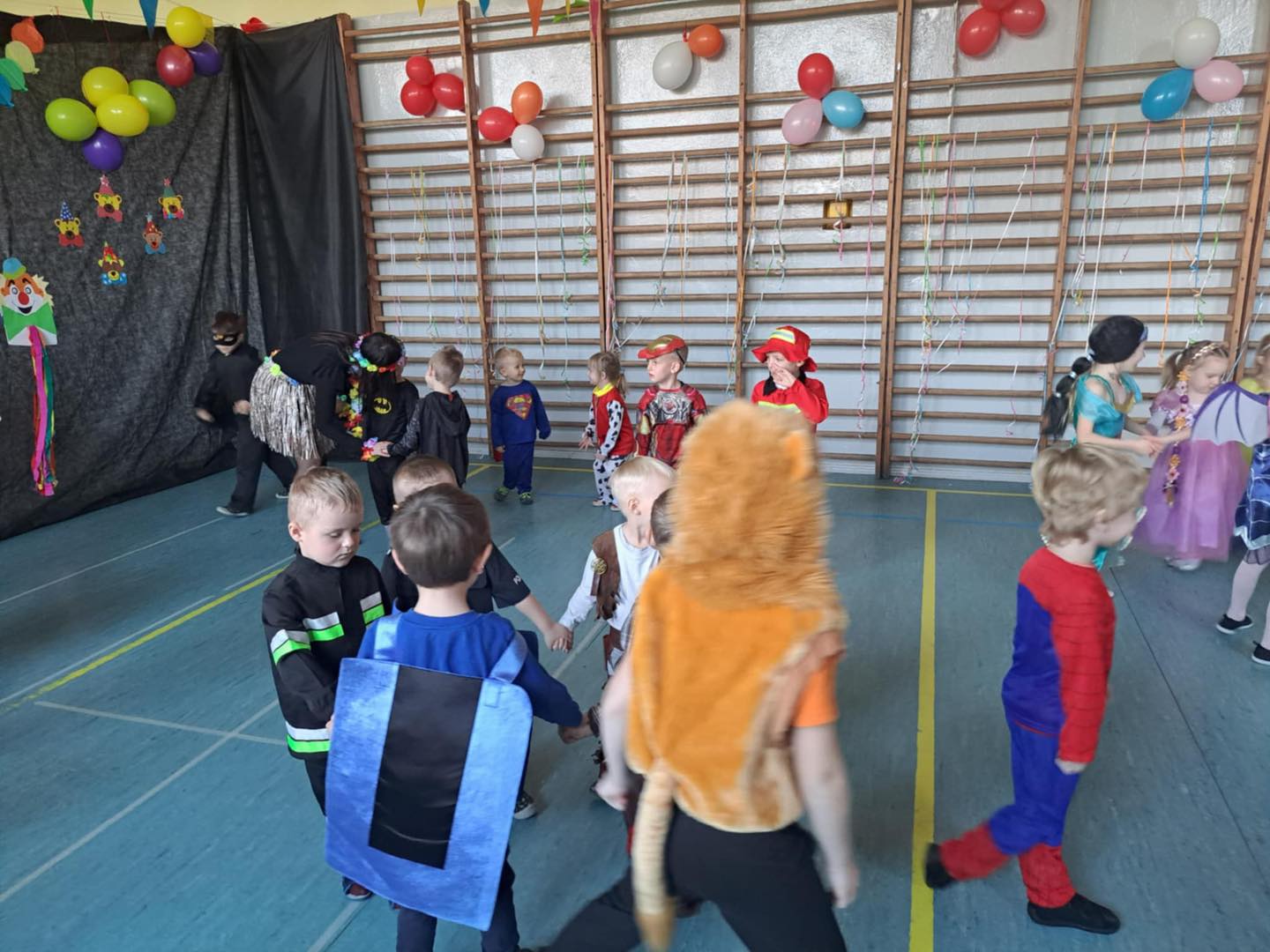 W dniu 9.01.2025r. w naszym przedszkolu odbył się bal karnawałowy. Tego dnia już od rana w przedszkolu pojawiały się kolorowe postacie. Dzieci przebrane były za bohaterów znanych bajek. Rozpoznać dzieci było bardzo trudno. W pierwszej kolejności dzieci miały możliwość pozowania do zdjęć indywidualnych i grupowych. Następnie odbyły się zabawy i tańce na sali gimnastycznej wraz z wodzirejem. Dzieci świetnie się bawiły. Na sali podczas pląsów robiło się kolorowo, wszyscy bawili się wesoło, a uśmiech nie znikał z twarzy.