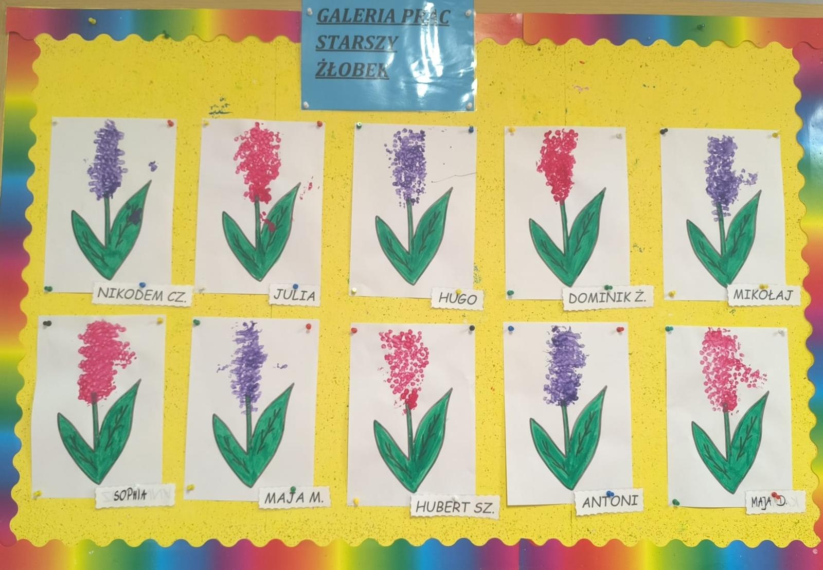 Zawitała do nas już wiosna, z tej okazji dzieci wykonały piękne kolorowe hiacynty. Do zadania potrzebne były patyczki higieniczne i farby. Prace dzieci można podziwiać w szatni żłobka.