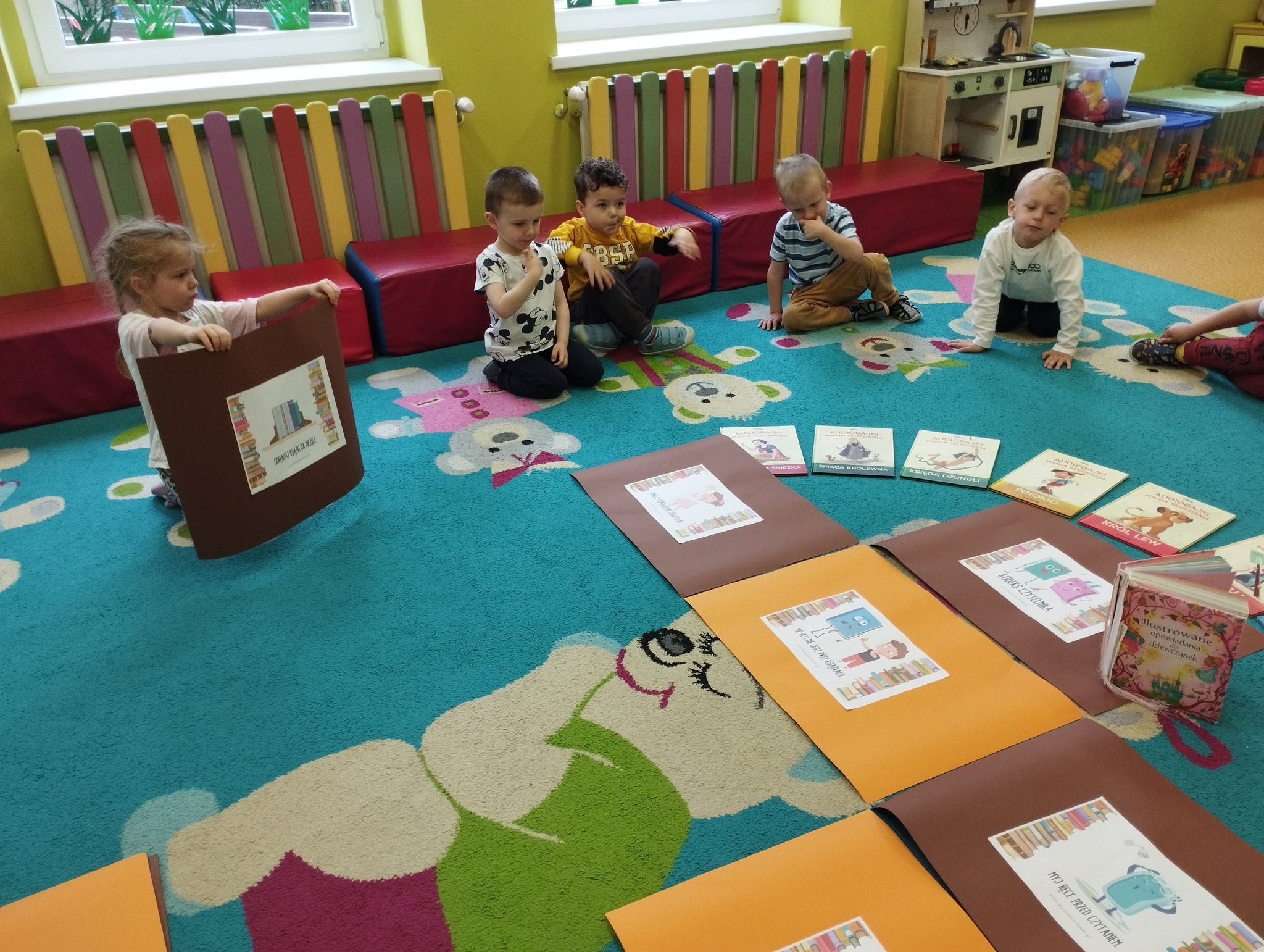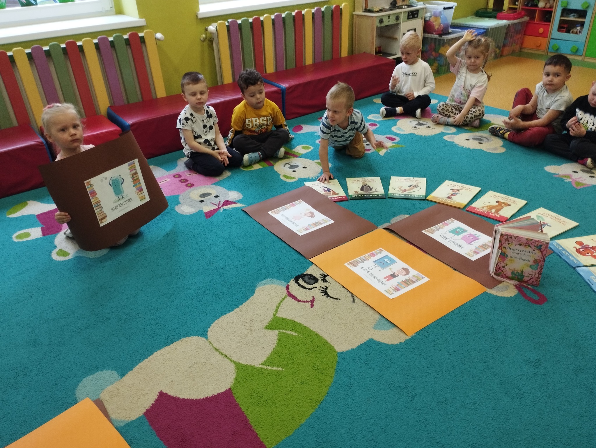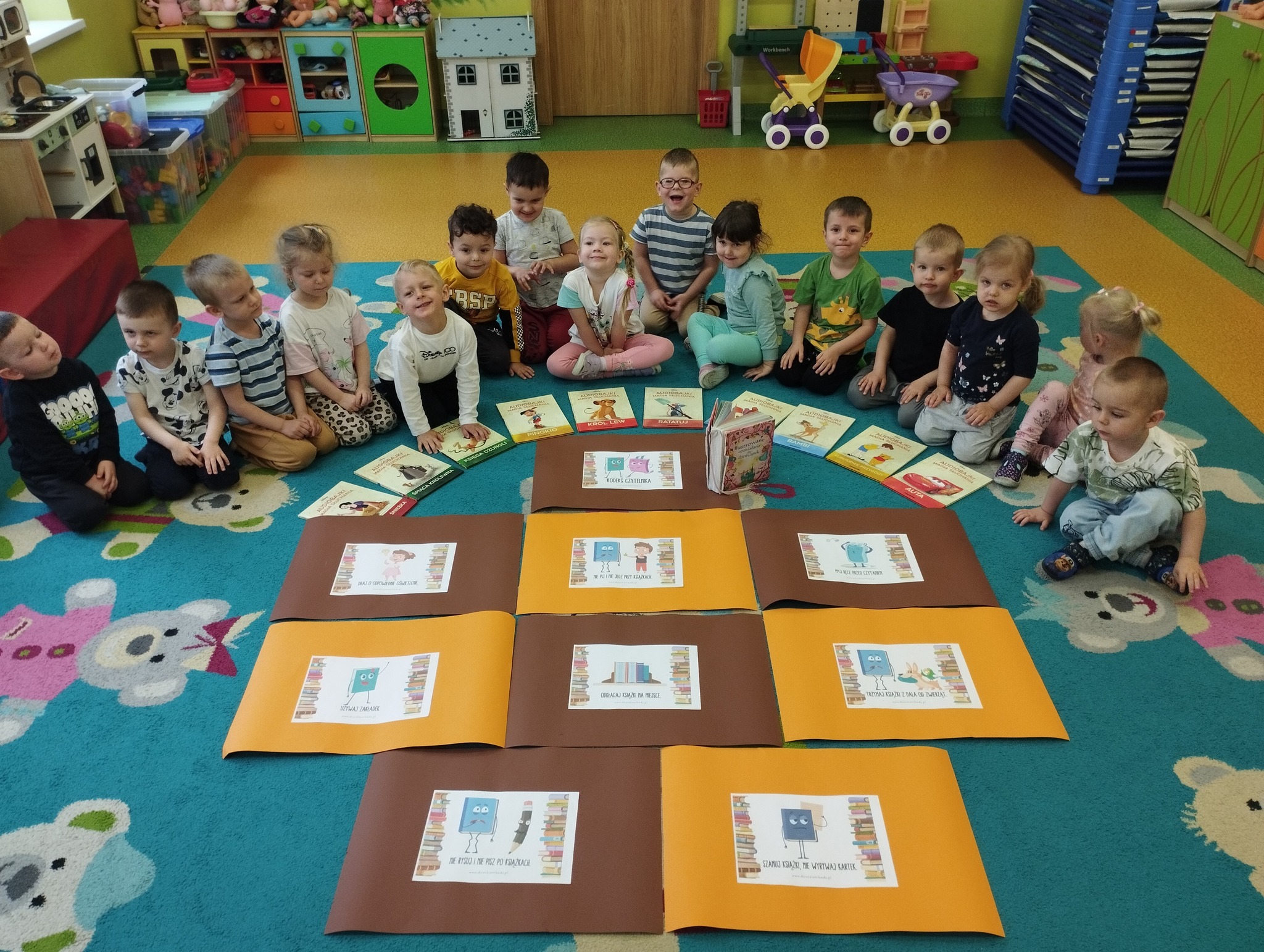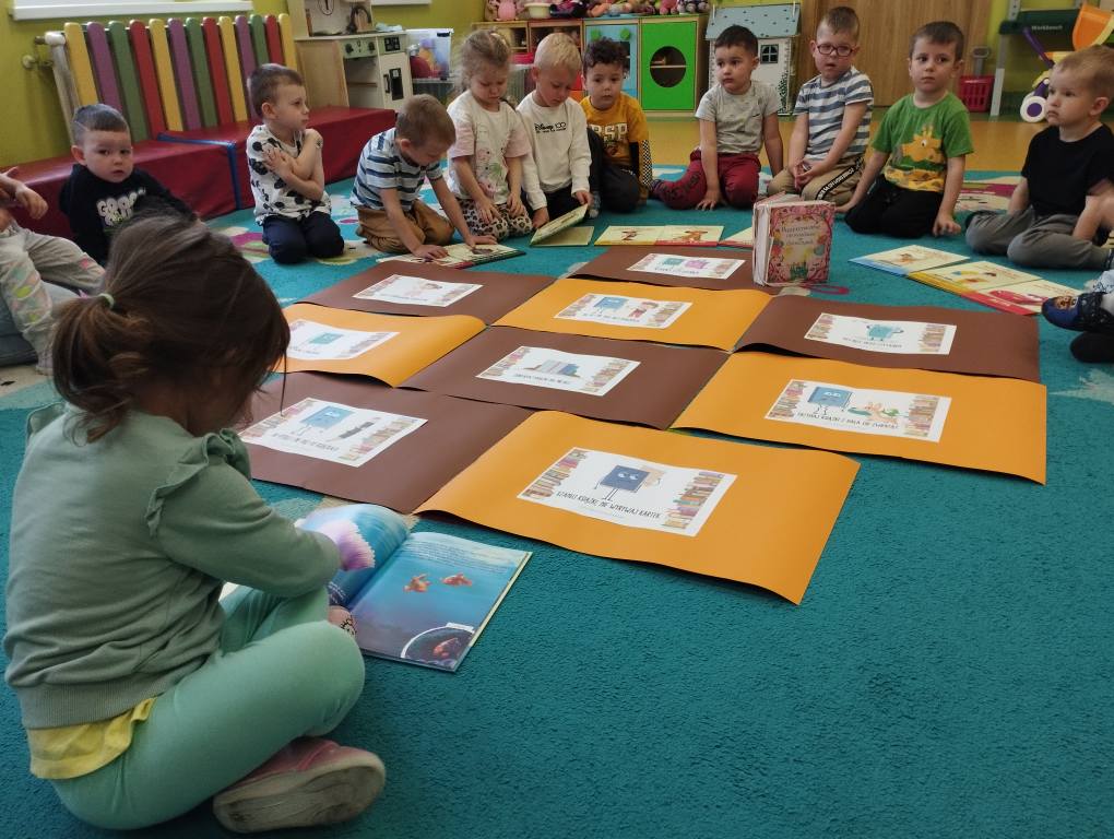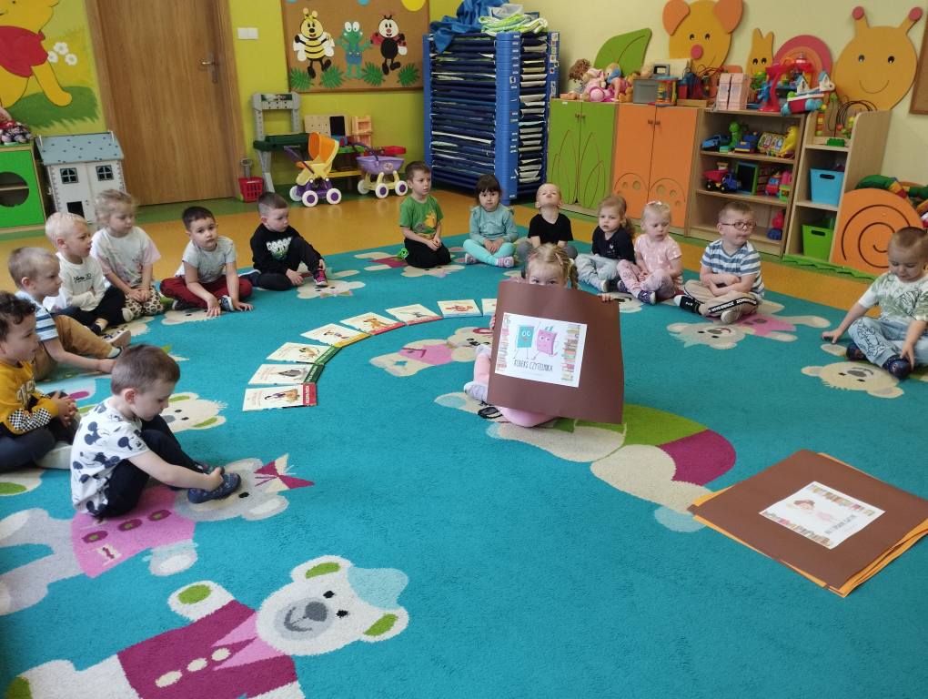 23 kwietnia obchodziliśmy w naszej grupie Międzynarodowy Dzień Książki. To wyjątkowe święto było dla Maluszków okazją do poznania świata książek i rozwijania zainteresowań czytelniczych już od najmłodszych lat. Dzieci przyniosły swoje ulubione książeczki, które wspólnie oglądaliśmy i omawialiśmy. Dowiedziały się także, jak powstaje książka oraz jak należy o nią dbać. Wspólnie stworzyliśmy Kodeks Małego Czytelnika, w którym zawarliśmy najważniejsze zasady korzystania z książek, takie jak: mycie rączek przed czytaniem, delikatne przewracanie stron, odkładanie książki na miejsce czy słuchanie, gdy ktoś czyta. Każde dziecko podpisało kodeks odciskiem palca, co sprawiło im wiele radości! To był dzień pełen emocji, pięknych opowieści i dobrej zabawy. Mamy nadzieję, że miłość do książek będzie towarzyszyć naszym Maluszkom przez całe życie.