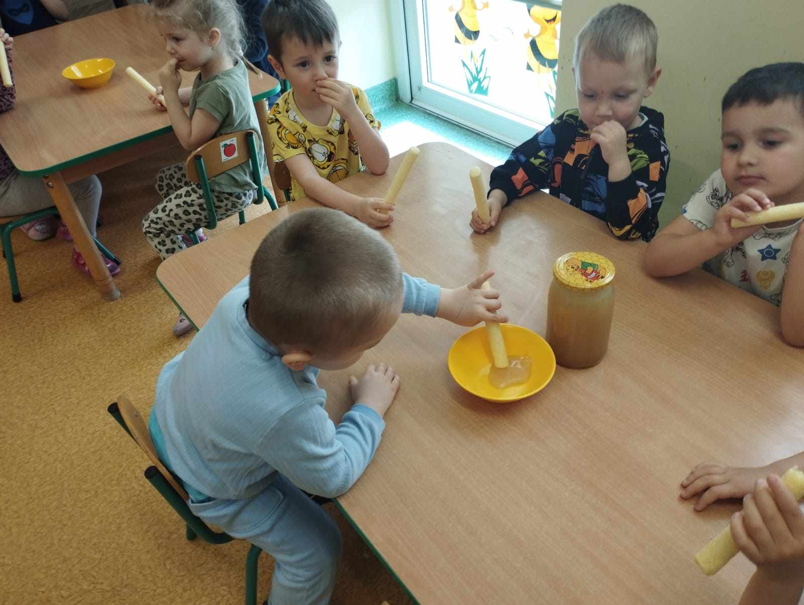 W naszym przedszkolu obchodziliśmy Dzień Pszczół, który był pełen radości, nauki i kreatywnych zabaw. Celem wydarzenia było przybliżenie dzieciom roli pszczół w przyrodzie oraz uwrażliwienie ich na potrzebę ochrony tych pożytecznych owadów.Dzieci brały udział w zajęciach plastycznych, podczas których tworzyły pszczółki, ule i kwiaty z różnych materiałów. Zabawach sensorycznych i smakowych, poznając miód wszystkimi zmysłami – jego zapach, smak i konsystencję. Edukacyjnych opowieściach o życiu pszczół – przedszkolaki dowiedziały się, jak wygląda cykl życia pszczoły i jak powstaje miód. Spacerze do parku, gdzie obserwowały „hotel dla owadów” i rozmawiały o tym, jak można pomagać pszczołom w mieście. Dzień był nie tylko pełen zabawy, ale także wartościowej wiedzy, którą dzieci z pewnością zapamiętają na długo.