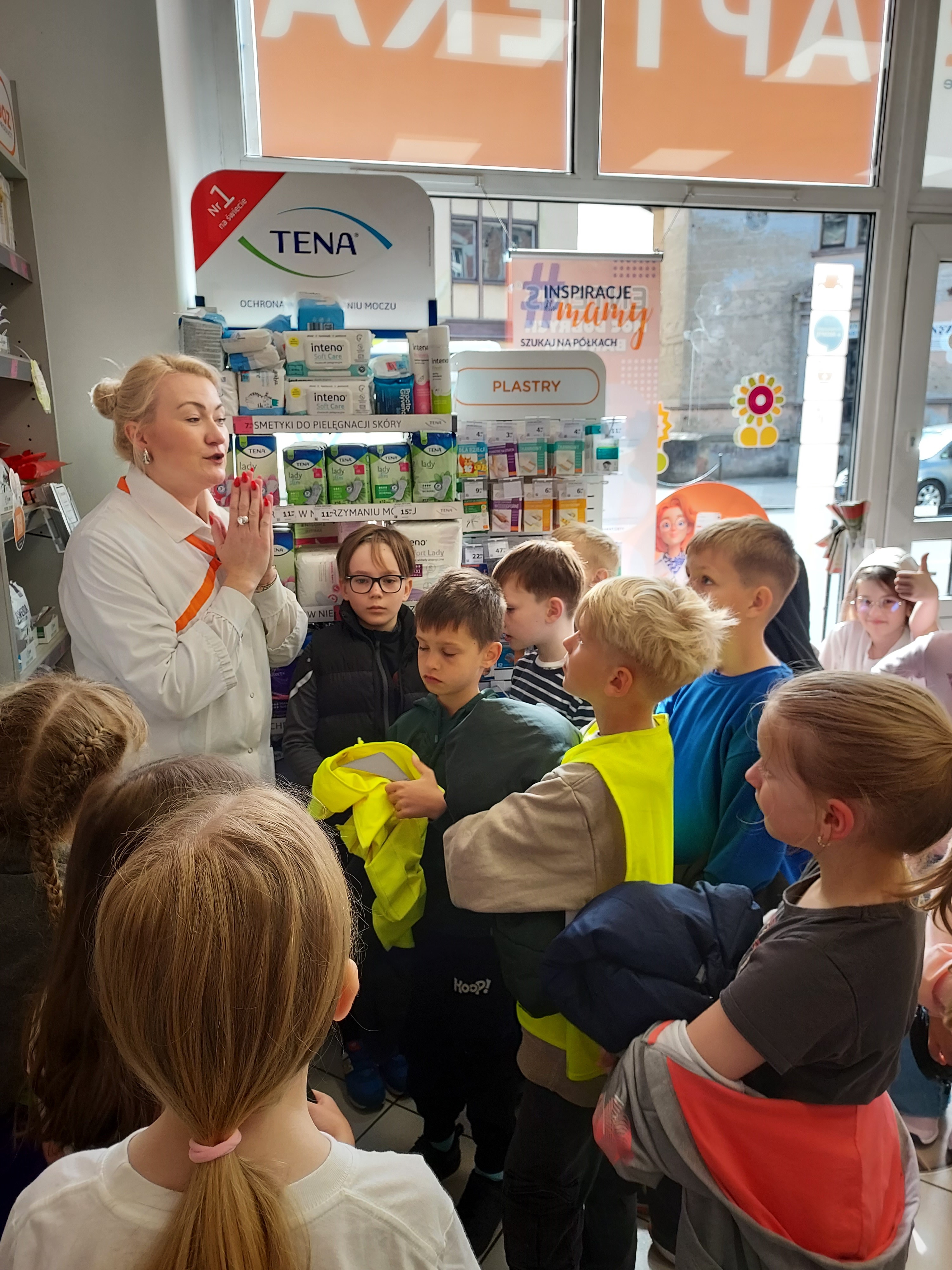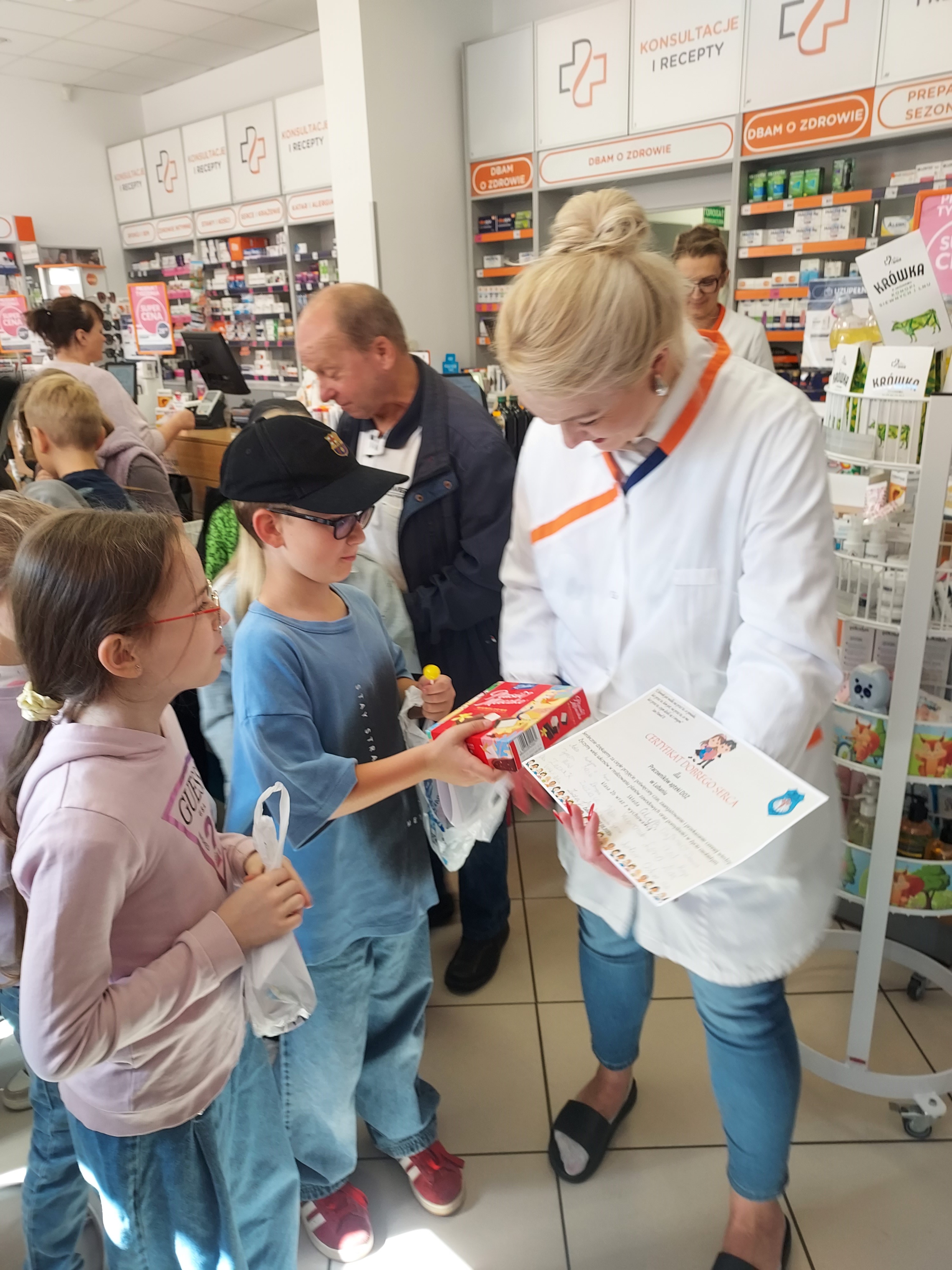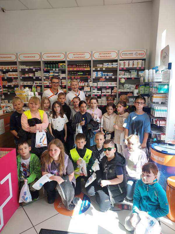Podczas wizyty dzieci miały okazję z bliska przyjrzeć się pracy farmaceuty, poznać różne rodzaje leków, dowiedzieć się, kiedy i jak należy je stosować, a także jak odpowiedzialnie dbać o swoje zdrowie. Uczniowie zadawali wiele pytań, na które pani farmaceutka z zaangażowaniem i uśmiechem odpowiadała, rozwiewając dziecięce wątpliwości.