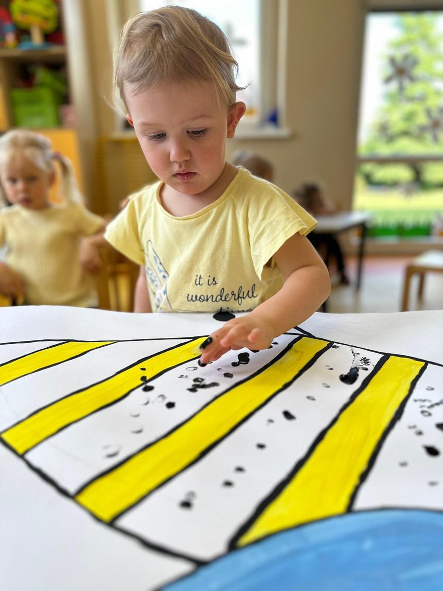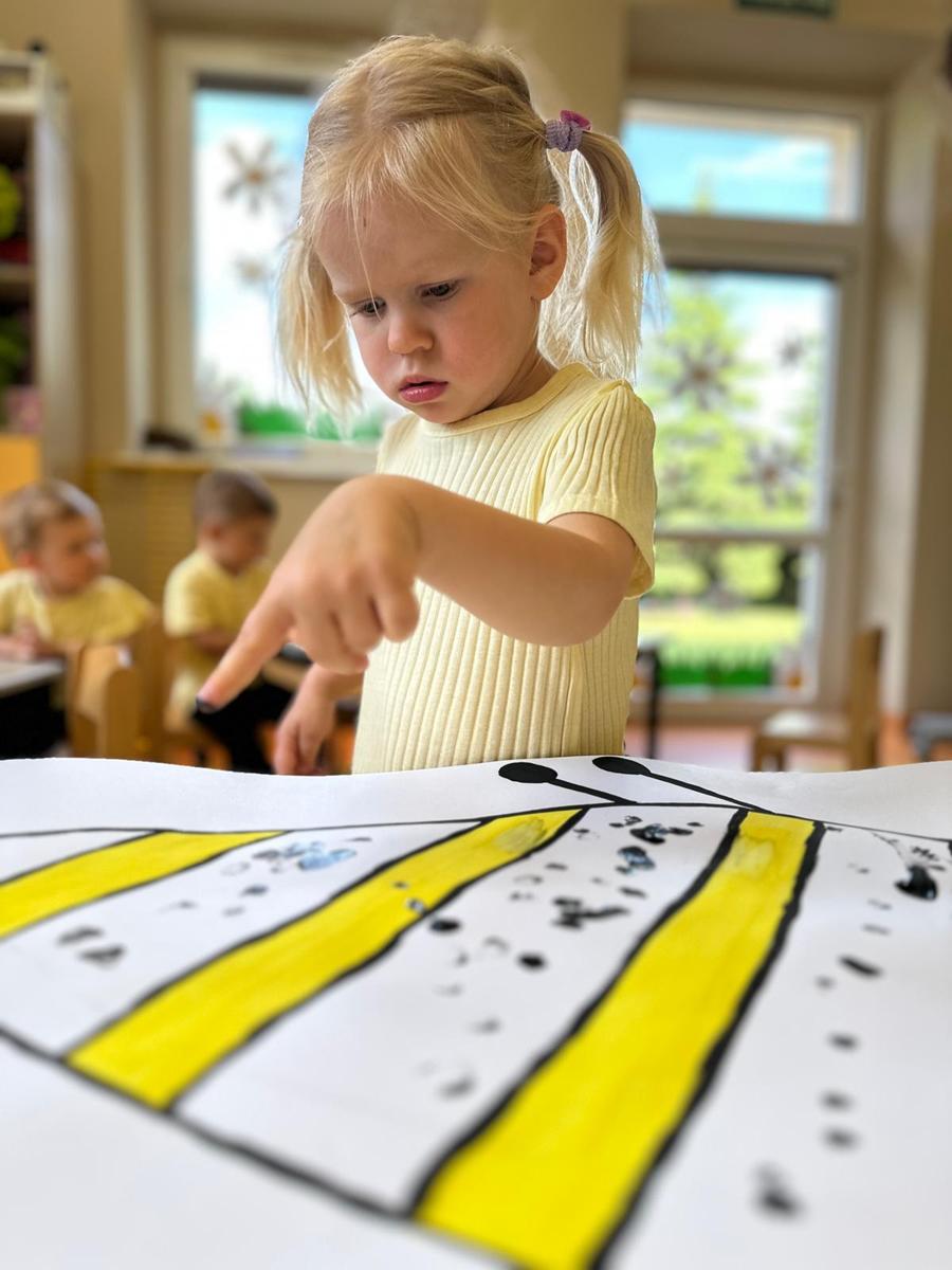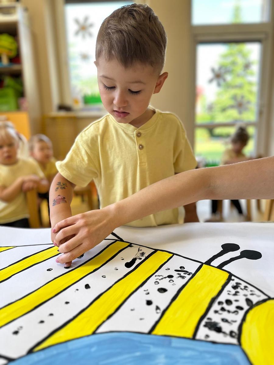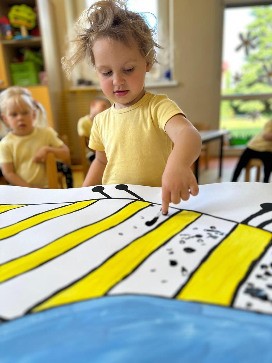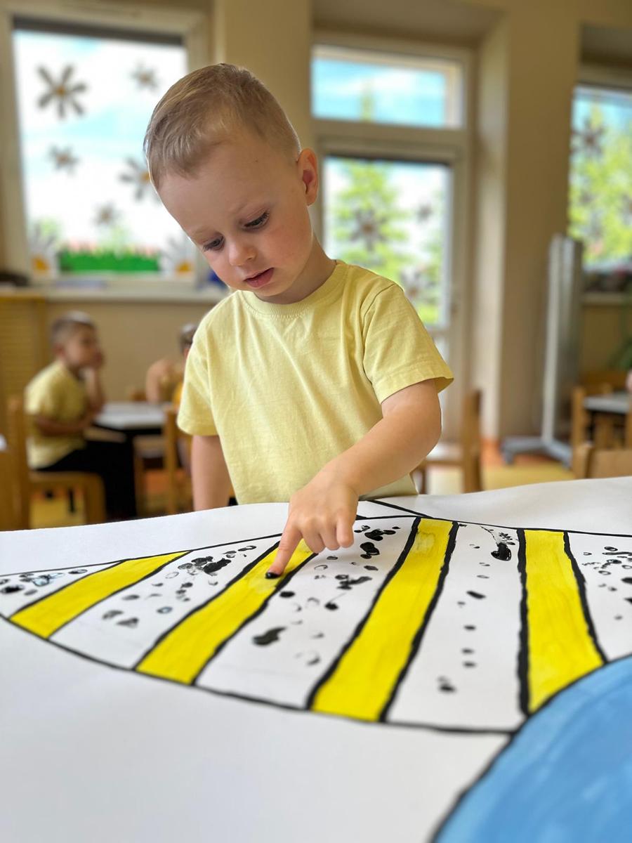 Międzynarodowy dzień Pszczół to wyjątkowy dzień pełen atrakcji dla naszych małych Pszczółek. Odbył się wspaniały bal, były tańce, przebrania i pyszne ciasteczka. A na koniec wszystkie Pszczółki odcisnęły swoje paluszki tworząc wspaniałą pszczołę, którą można podziwiać w naszej żłobkowej szatni.