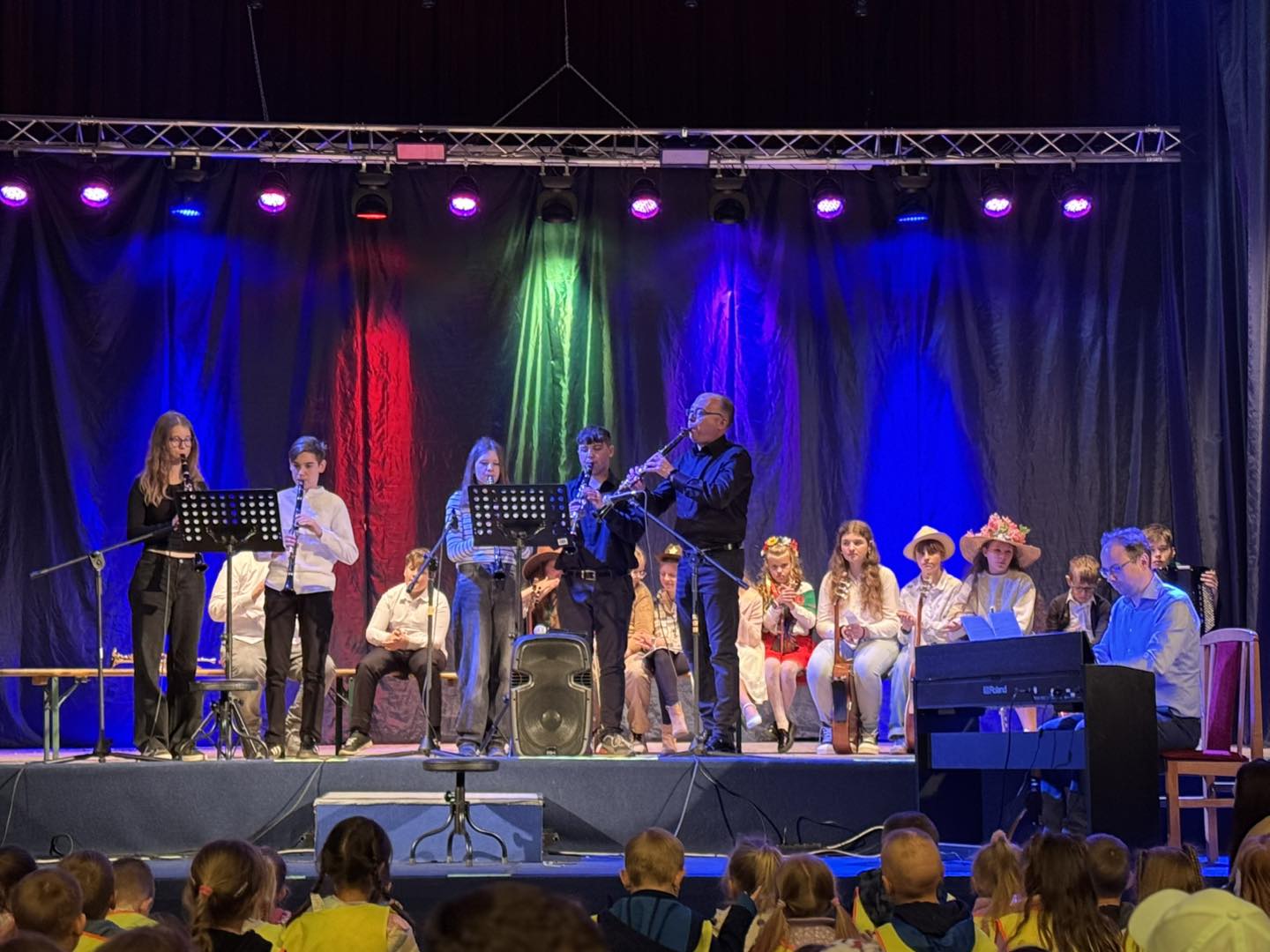 Nasze przedszkolaki 5-latki i 6- latki uczestniczyły w koncercie uczniów ze Szkoły Muzycznej pt. „Z piosenką przez świat".