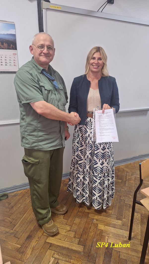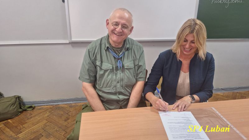 Ostatnim punktem spotkania było podpisanie Regulaminu przyznawania nagrody za wybitne osiągnięcia w nauce historii w formie stypendium naukowego za rok szkolny 2025/2026. Dokument podpisali pan Piotr Kucznir – prezes ŁTH Zamku Czocha, jako Fundator Stypendium oraz wicedyrektor naszej szkoły pani Elwira Wojtusik. Jest to wyraz współpracy naszej szkoły z Łużyckim Towarzystwem Zamku Czocha, które zostało podpisane w kwietniu br. i jak widać współpraca ta otwiera przed naszą szkołą nowe możliwości wspierania uczniów pasjonujących się historią i rozwijania ich talentów.