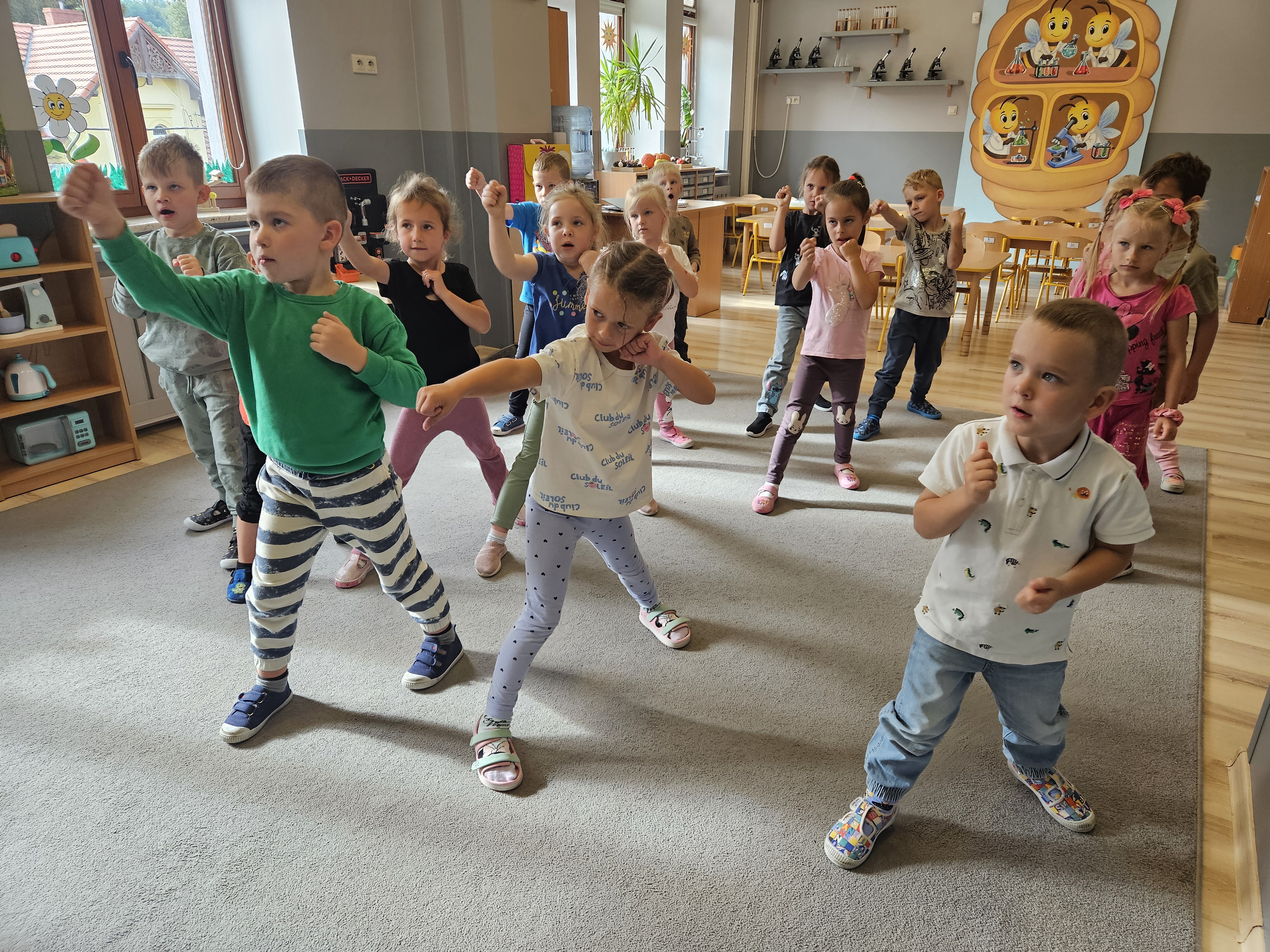Aktywne Pszczółki na zajęciach z samoobrony z Trenerem Jakubem Jaworskim.