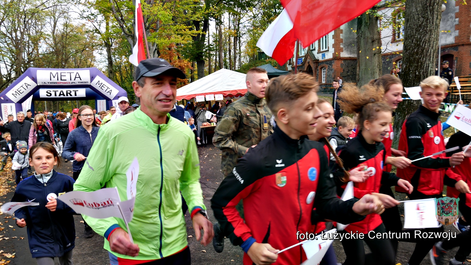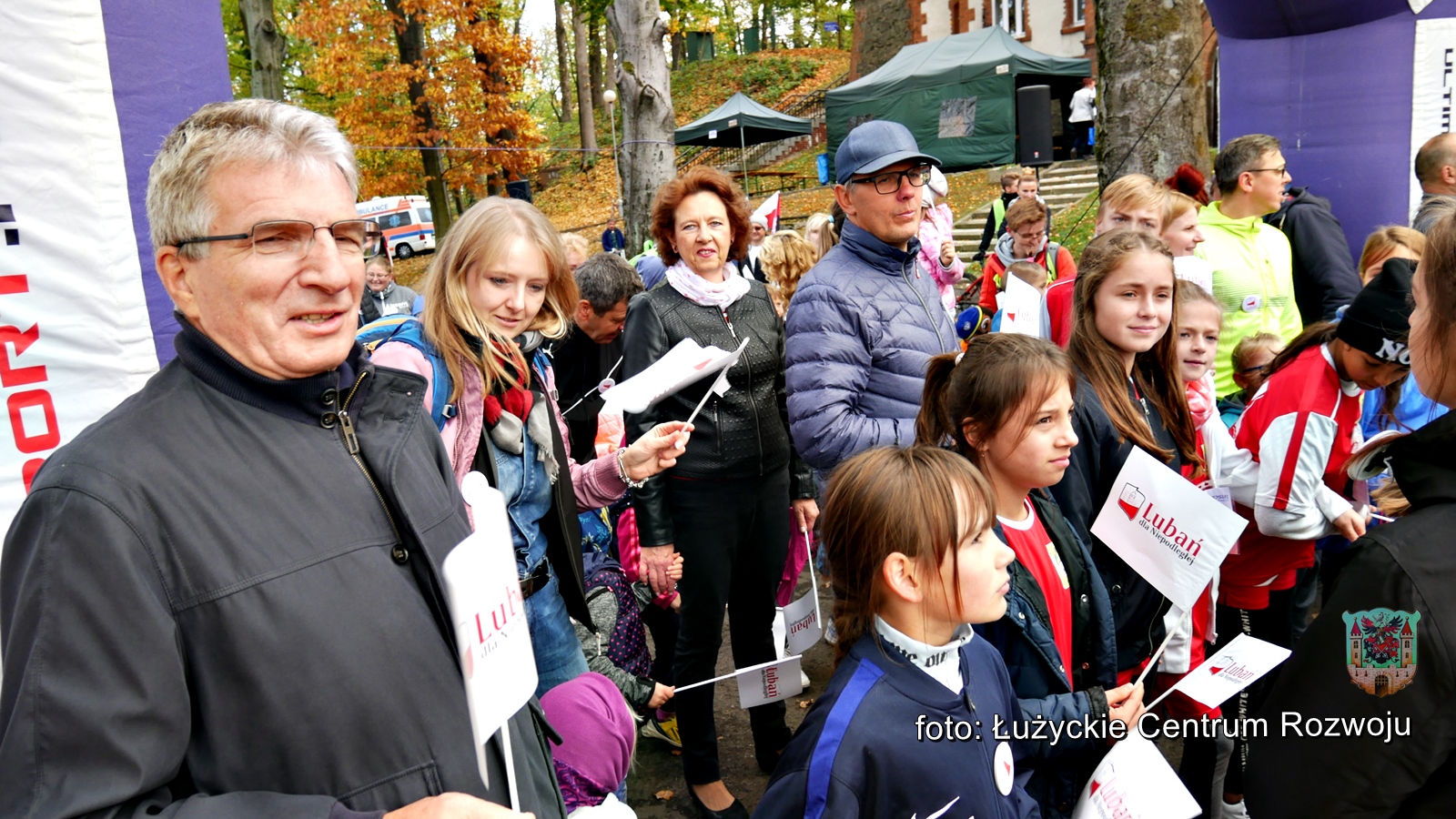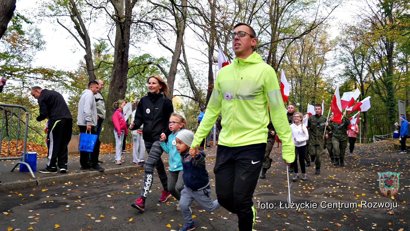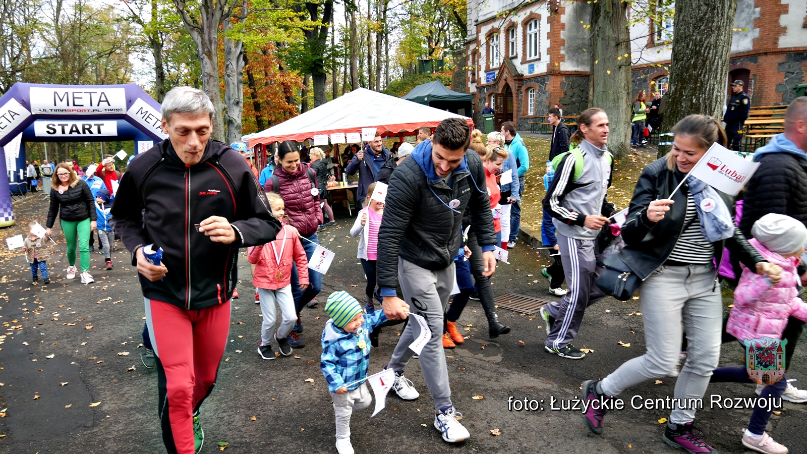 W tym roku, z racji setnej rocznicy odzyskania przez Polskę niepodległości w programie wydarzenia pojawiła się pewna nowość. Punktualnie o godz. 12.00 wystartował bieg/marsz dla rodzin z dziećmi w ramach „Lubań dla Niepodległej”. Maluszki dopiero co stawiające pierwsze kroki, jak również dojrzali lubanianie mający nie jeden kilometr za sobą z dumą i uśmiechem na ustach pokonywali kolejne metry dla uczczenia pamięci o tak niezwykłej karcie w historii naszego narodu. Na czele niepodległościowych biegaczy stanęli z flagami Polski wychowankowie klas proobronnych Zespołu Szkół Ponadgimanazjalnych im. Kombatantów Ziemi Lubańskiej pod opieką Elizy Sławińskiej. Tuż za nimi, w dłoniach pozostałych uczestników powiewały chorągiewki. Biało-czerwona kolumna, wśród której nie zabrakło Burmistrza Miasta Lubań, Arkadiusz Słowińskiego sunęła przez park, aż do mety, gdzie czekały pamiątkowe misie Lubię Lubań. Wszystkim spodobała się inicjatywa i ochoczo zapewniali, że za rok chętnie w podobny sposób uczciliby 101 rocznicę odzyskania niepodległości.