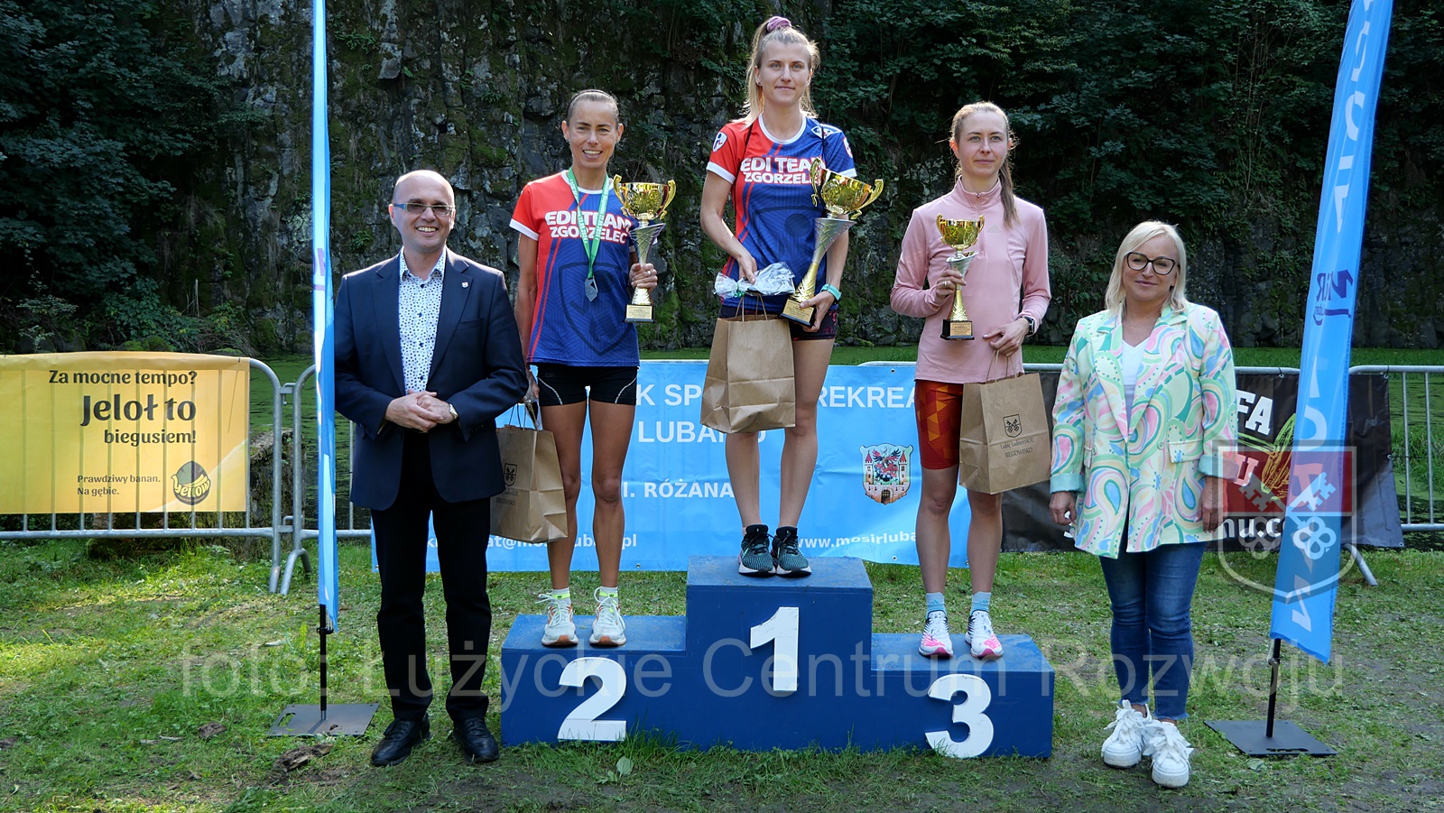 Lubański półmaraton 21 km open kobiety: Anna Grzegrzółka, Ewa Bielawa, Monika Farganus