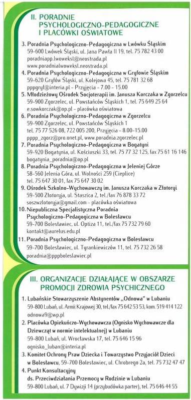 - Placówki lecznicze, poradnie psychologiczno-pedagogiczne, placówki oświatowe